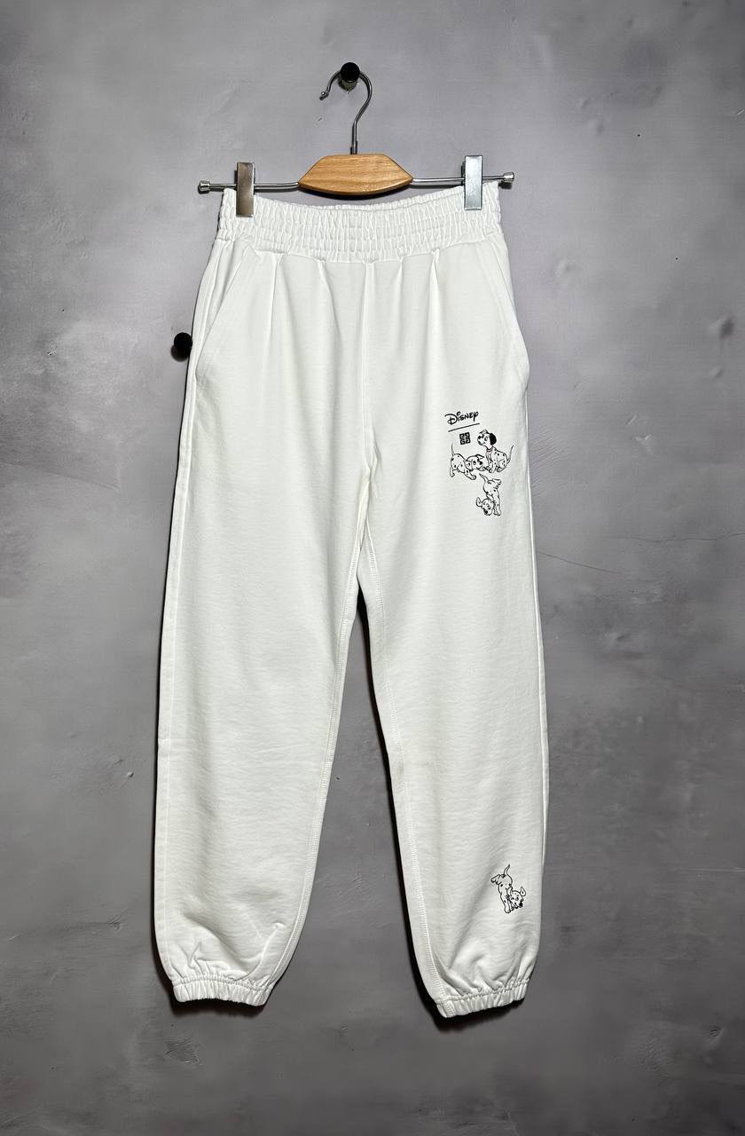 Брюки женские LUX-98330 - это спортивные брюки белого цвета в стиле casual. Они имеют свободный крой, резинку на талии и манжетах, что обеспечивает комфорт при носке. Данные брюки идеально подойдут для создания расслабленных образов. На изделии присутствует принт с изображением героев мультфильма "101 далматинец".