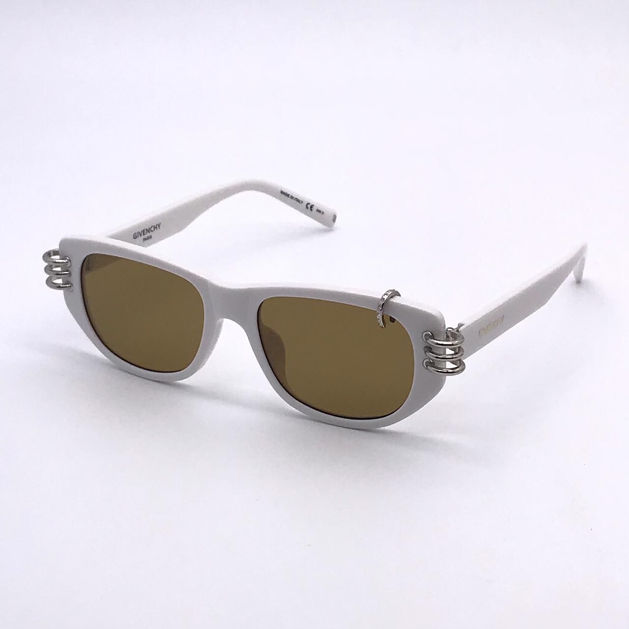 Стильные солнцезащитные очки Givenchy LUX-46975 в белой оправе с золотистыми линзами — идеальный аксессуар для создания эффектного образа. Изящные серебристые элементы декора в виде колец и небольшой декоративный элемент с камушком придают модели утонченность и изысканность. Эти очки прекрасно дополнят как повседневный, так и вечерний наряд, подчеркивая вашу индивидуальность и чувство стиля.