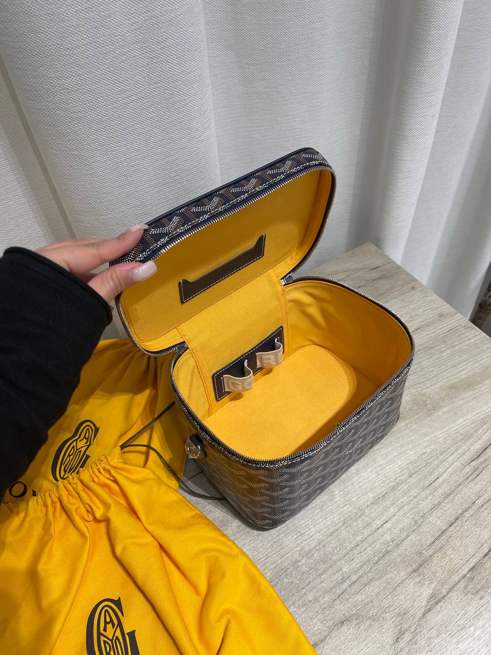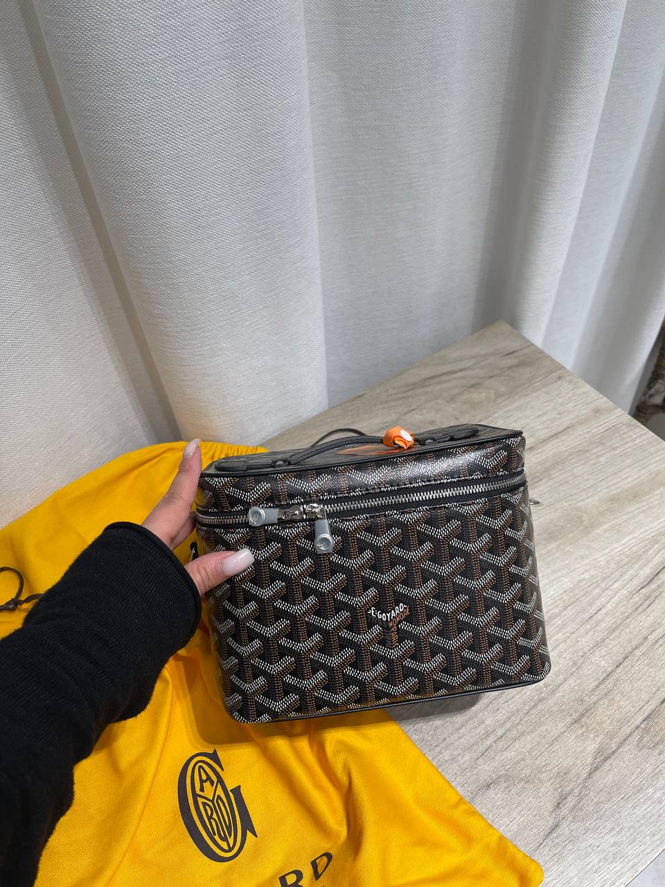 Стильная косметичка от Goyard - идеальный аксессуар для организации и хранения косметики и аксессуаров в путешествиях или дома. Она сочетает в себе классический дизайн и практичность.