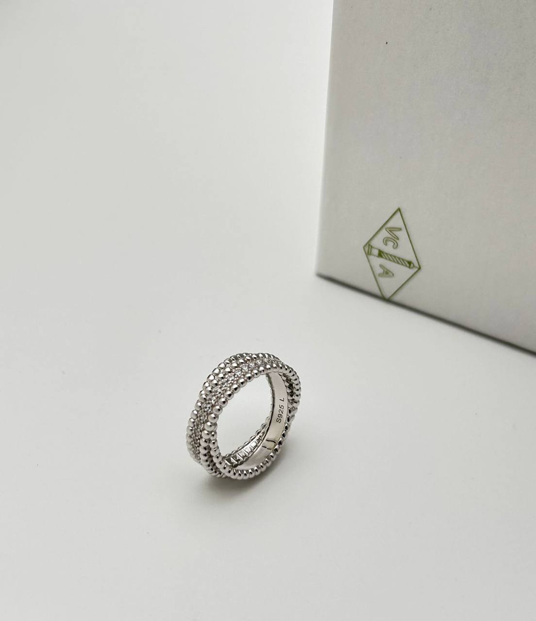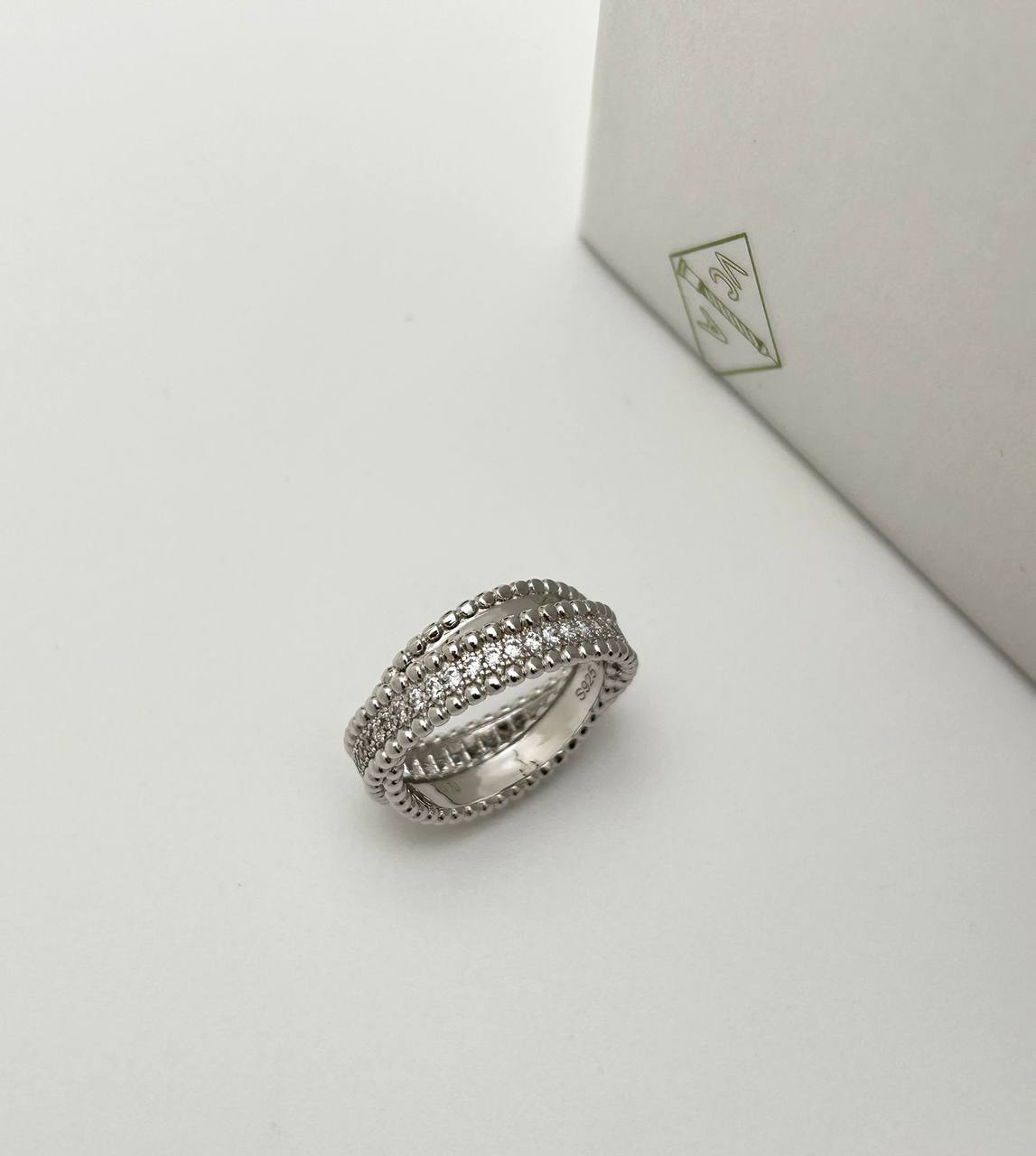 Кольцо Graff LUX-111887 представляет собой изысканное украшение в современном стиле. Серебристый цвет с текстурой, усыпанной камнями, делает его элегантным аксессуаром. Идеально подходит для повседневной носки и особых случаев.