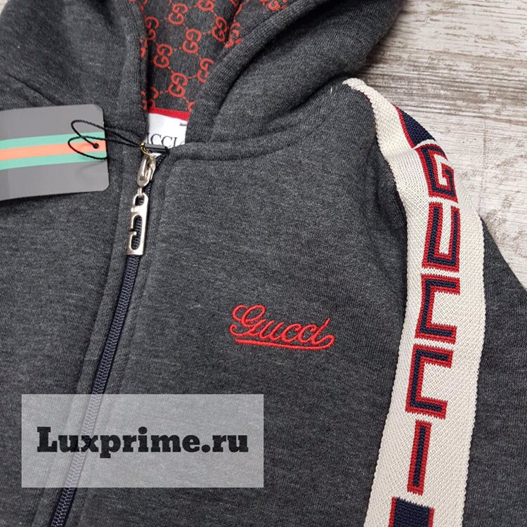 Спортивный костюм Gucci ДО-006 представляет собой стильный и комфортный комплект, состоящий из худи на молнии и брюк. Дизайн костюма выполнен в темном оттенке серого, дополненный контрастной отделкой в виде полос с логотипами бренда по бокам рукавов и штанин. Внутренняя часть капюшона украшена узнаваемым принтом Gucci. Этот костюм идеально подойдет для создания непринужденных повседневных образов, а также для занятий спортом.