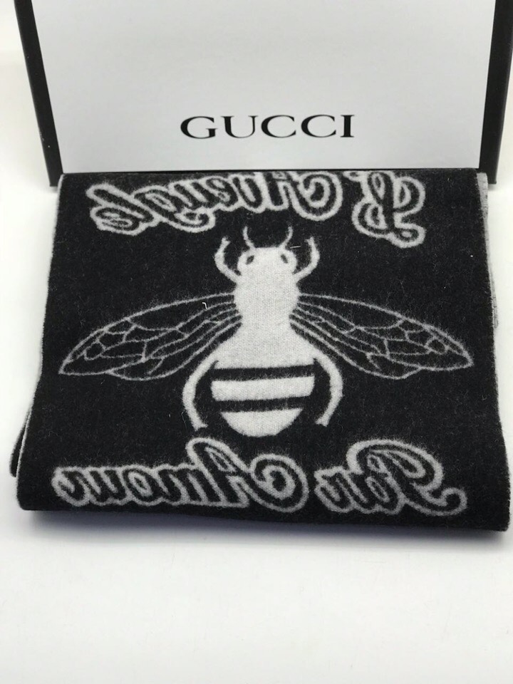 Шарф Gucci АКС-022 представляет собой стильный и эффектный аксессуар, выполненный в классическом черном цвете с контрастным белым принтом. Дизайн украшен узнаваемым изображением пчелы, а также витиеватой надписью, характерной для бренда Gucci. Этот шарф станет ярким акцентом в любом образе, придавая ему элегантности и индивидуальности.