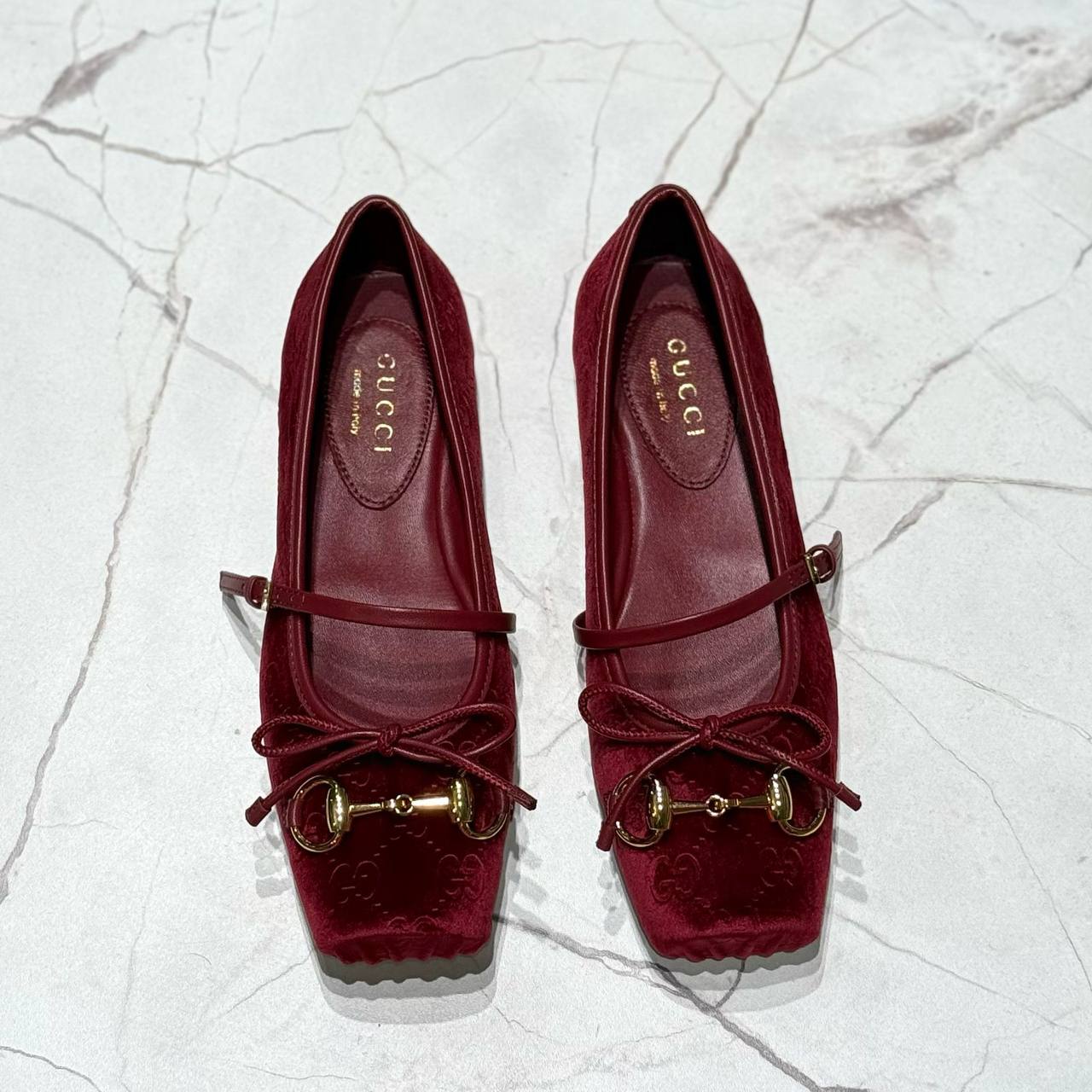 Балетки Gucci LUX-116891 - это элегантная женская обувь в классическом стиле. Бордовые балетки с фирменным узором, украшены фурнитурой в золотом цвете. Идеальный выбор для создания стильного и комфортного образа.