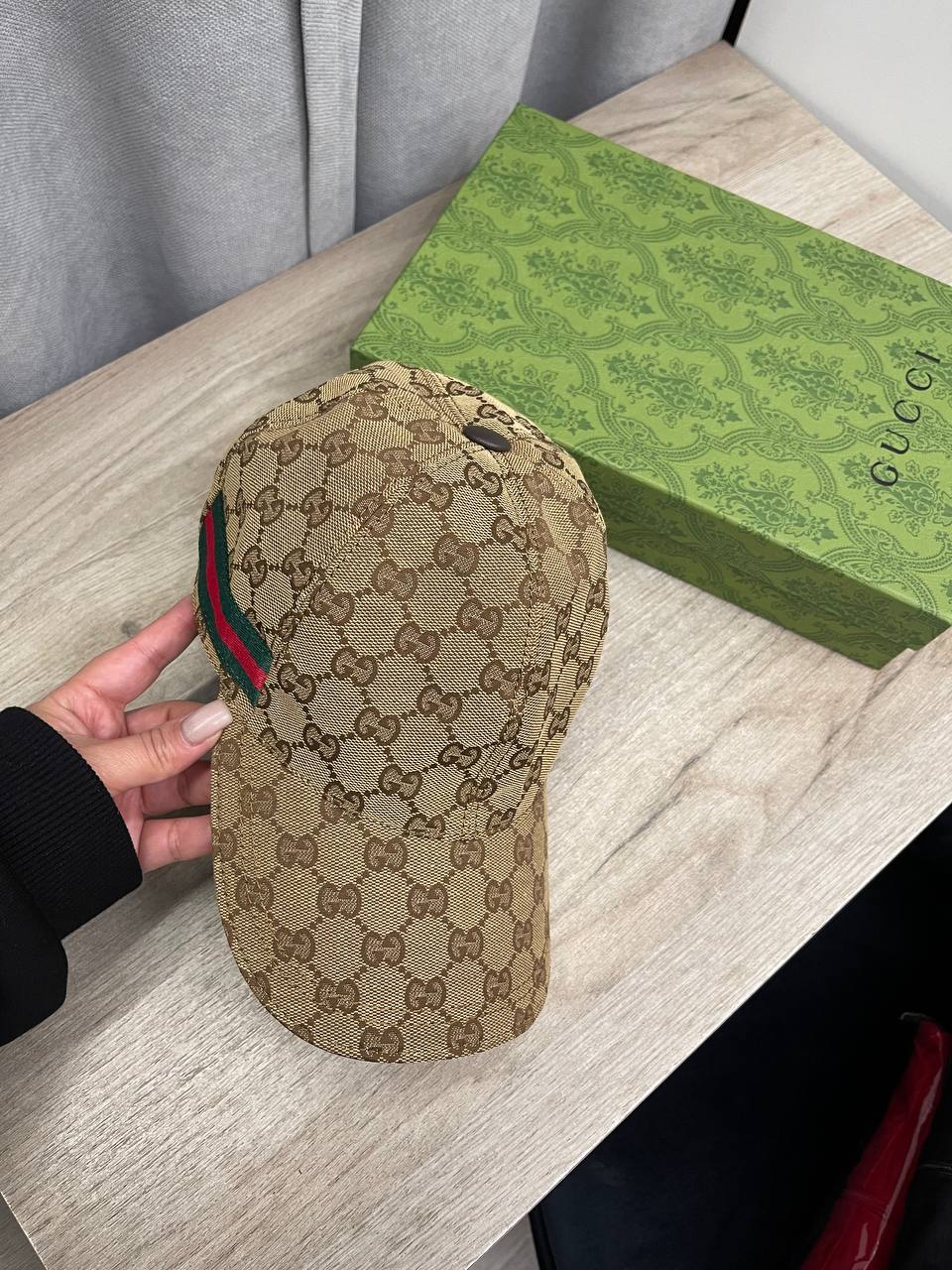 Бейсболка Gucci LUX-112709 - это стильный аксессуар, который дополнит ваш образ. Бейсболка выполнена в классическом стиле с узнаваемым дизайном бренда. Она имеет коричневый оттенок с фирменным узором и контрастной полосой сбоку. Бейсболка подходит для повседневной носки и может стать отличным дополнением к вашему гардеробу.