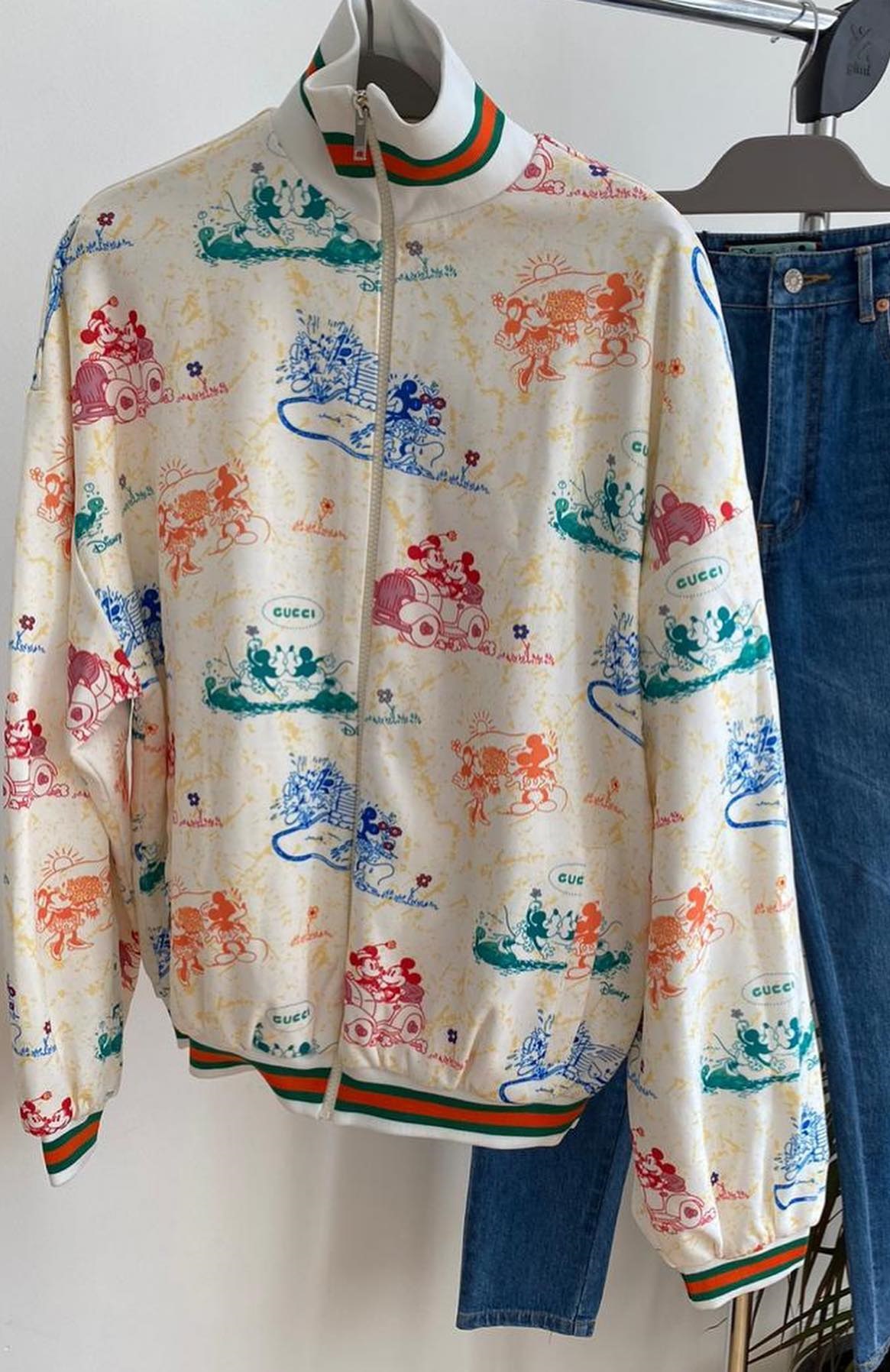 Бомбер Gucci LUX-31412 — это яркая и оригинальная модель, выполненная в стиле спортивного кэжуал. Он отличается уникальным принтом с изображением Микки Мауса и его друзей, что придает изделию игривый и узнаваемый характер. Этот бомбер станет отличным дополнением к повседневному гардеробу, добавив в него нотку веселья и индивидуальности.