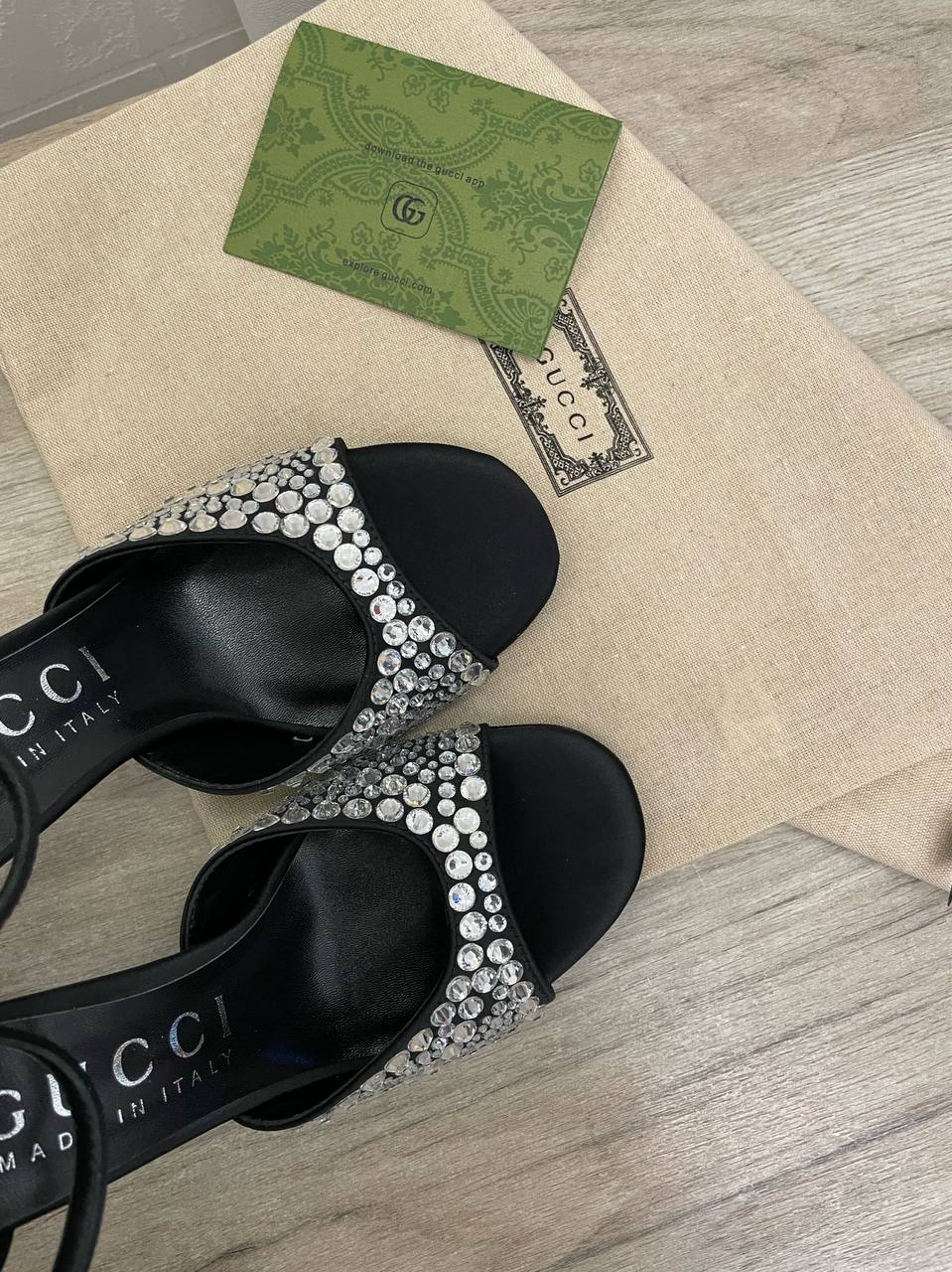 Босоножки Gucci LUX-101006 - это воплощение элегантности и роскоши. Чёрные босоножки на высоком каблуке, украшенные сверкающими камнями, идеально подойдут для особых случаев. Эта модель сочетает в себе классический стиль и современный дизайн, подчеркивая изысканный вкус своей обладательницы.