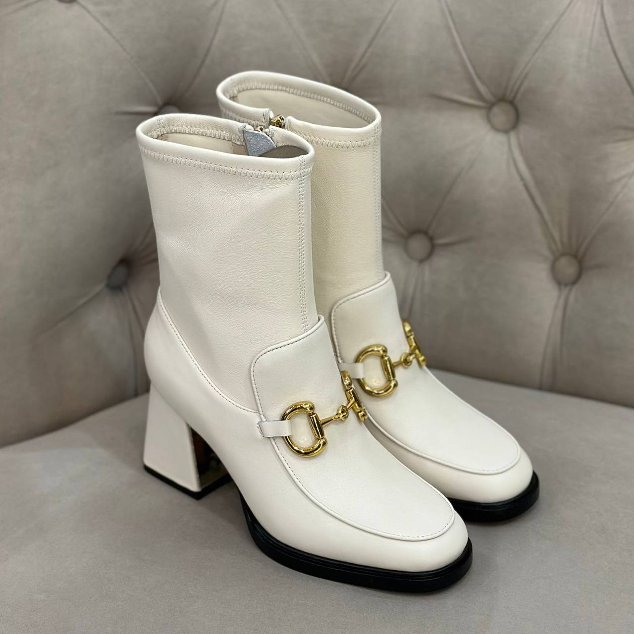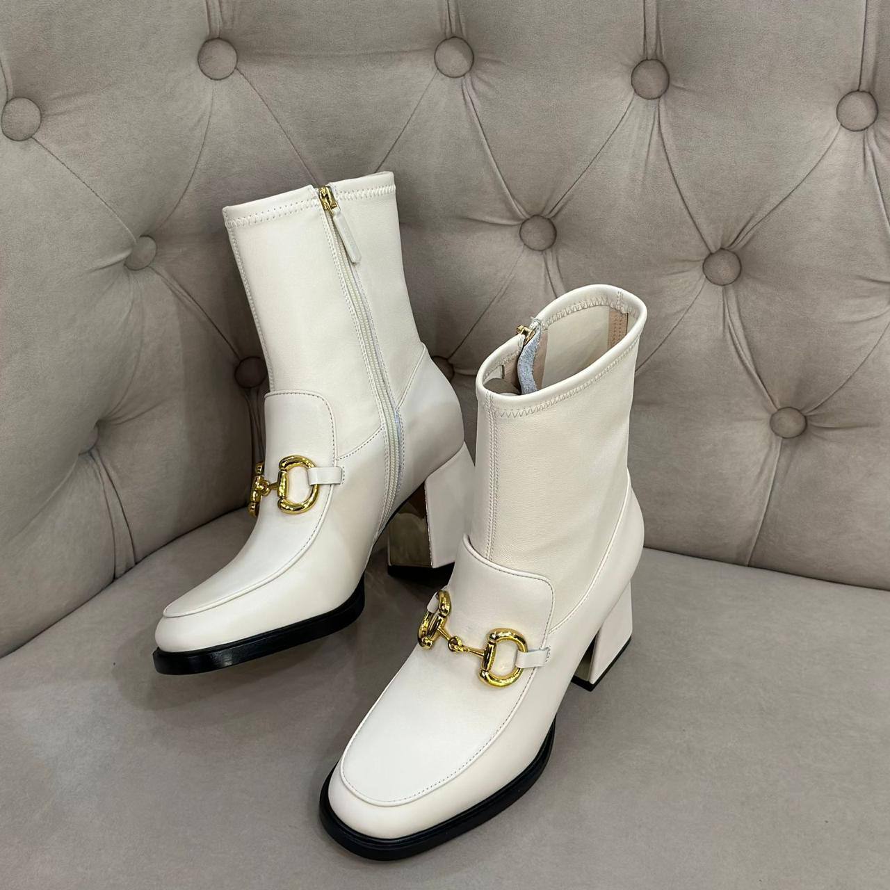 Ботильоны Gucci LUX-94422 — это стильная обувь от известного бренда, выполненная в элегантном дизайне. Белые ботильоны с золотистыми деталями и акцентами на комфорт и качество. Прекрасно подойдут для создания изысканных образов.