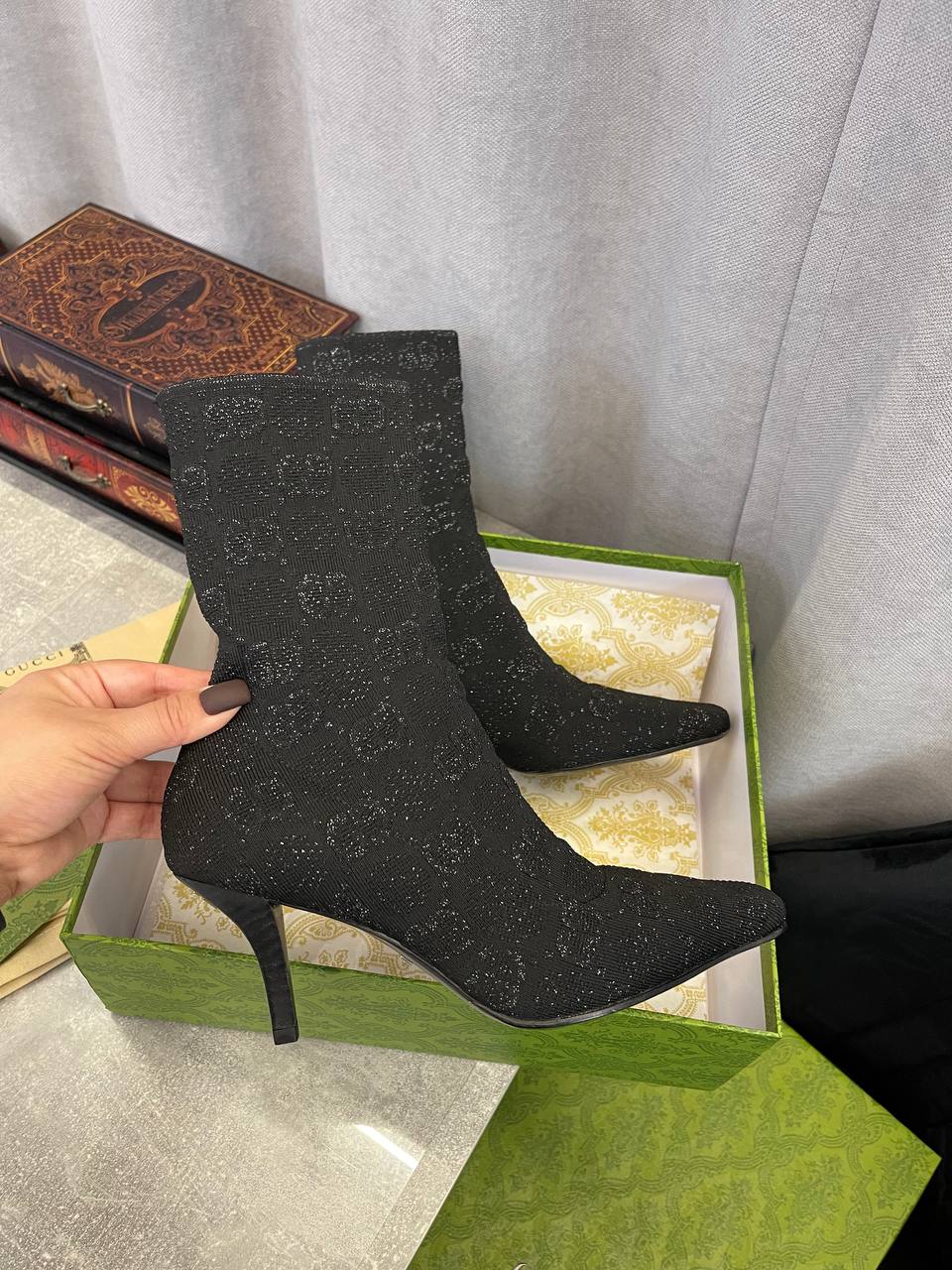 Ботильоны Gucci LUX-96840 — это воплощение изысканности и стиля. Элегантные ботильоны черного цвета, декорированы фирменным узором, отлично подойдут для создания утонченного образа. Острый носок и тонкий каблук делают их идеальным выбором для вечерних мероприятий и особых случаев.