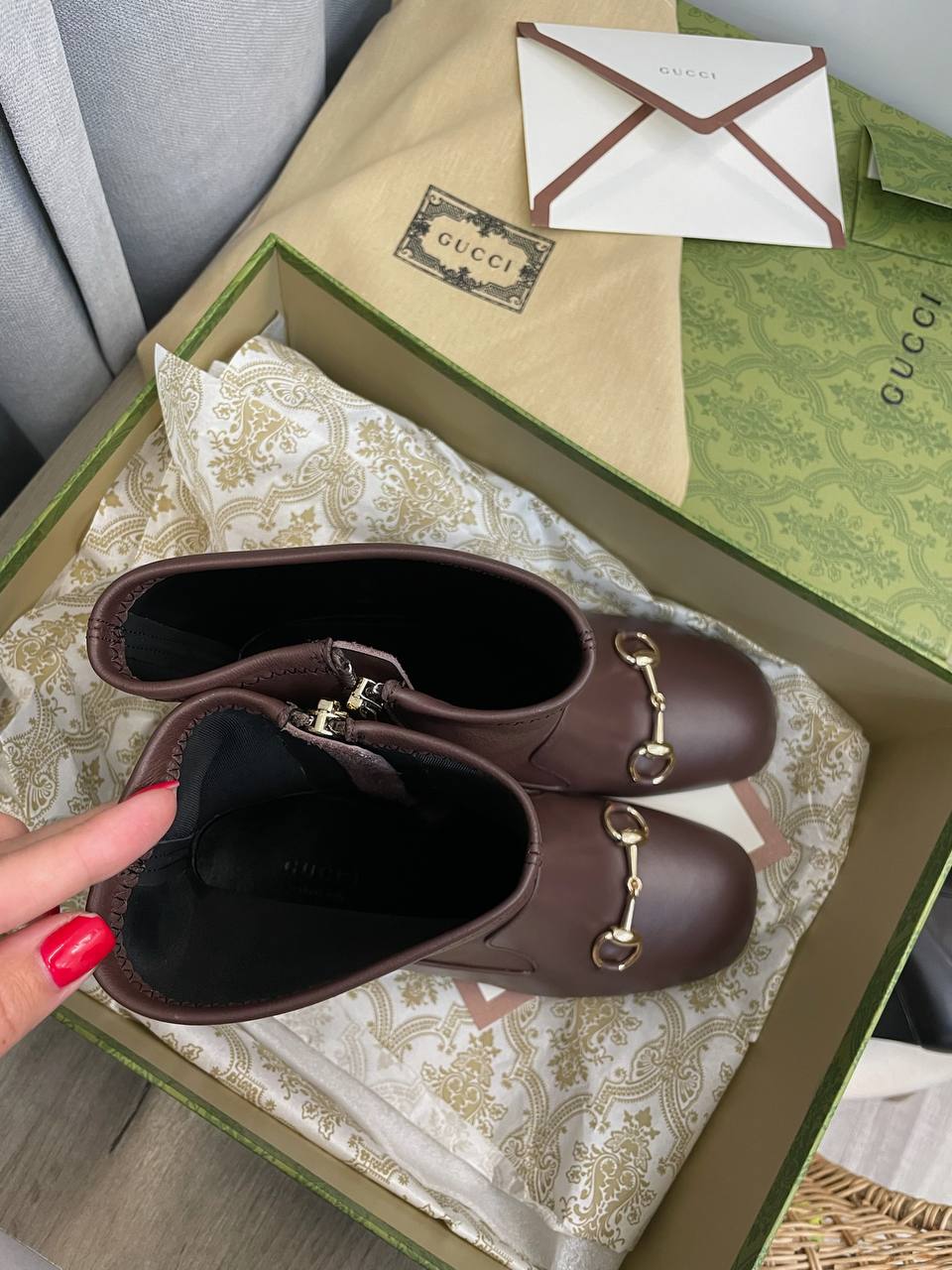 Ботильоны HORSEBIT Gucci LUX-111453 — это элегантная обувь в современном стиле. Они выполнены в бордовом цвете, имеют гладкую текстуру и оснащены декоративными элементами Horsebit. Идеально подойдут для создания стильных образов в прохладную погоду.