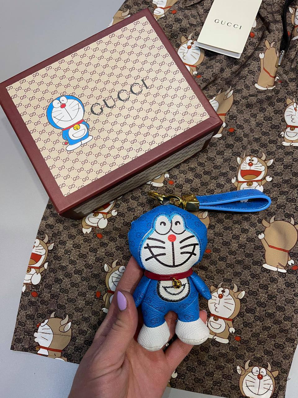 Брелок Gucci LUX-49961 выполнен в ярком дизайне, напоминающем персонажа комиксов. Этот стильный аксессуар от Gucci добавит индивидуальности вашим ключам или сумке, подчеркивая ваш вкус к оригинальным деталям.