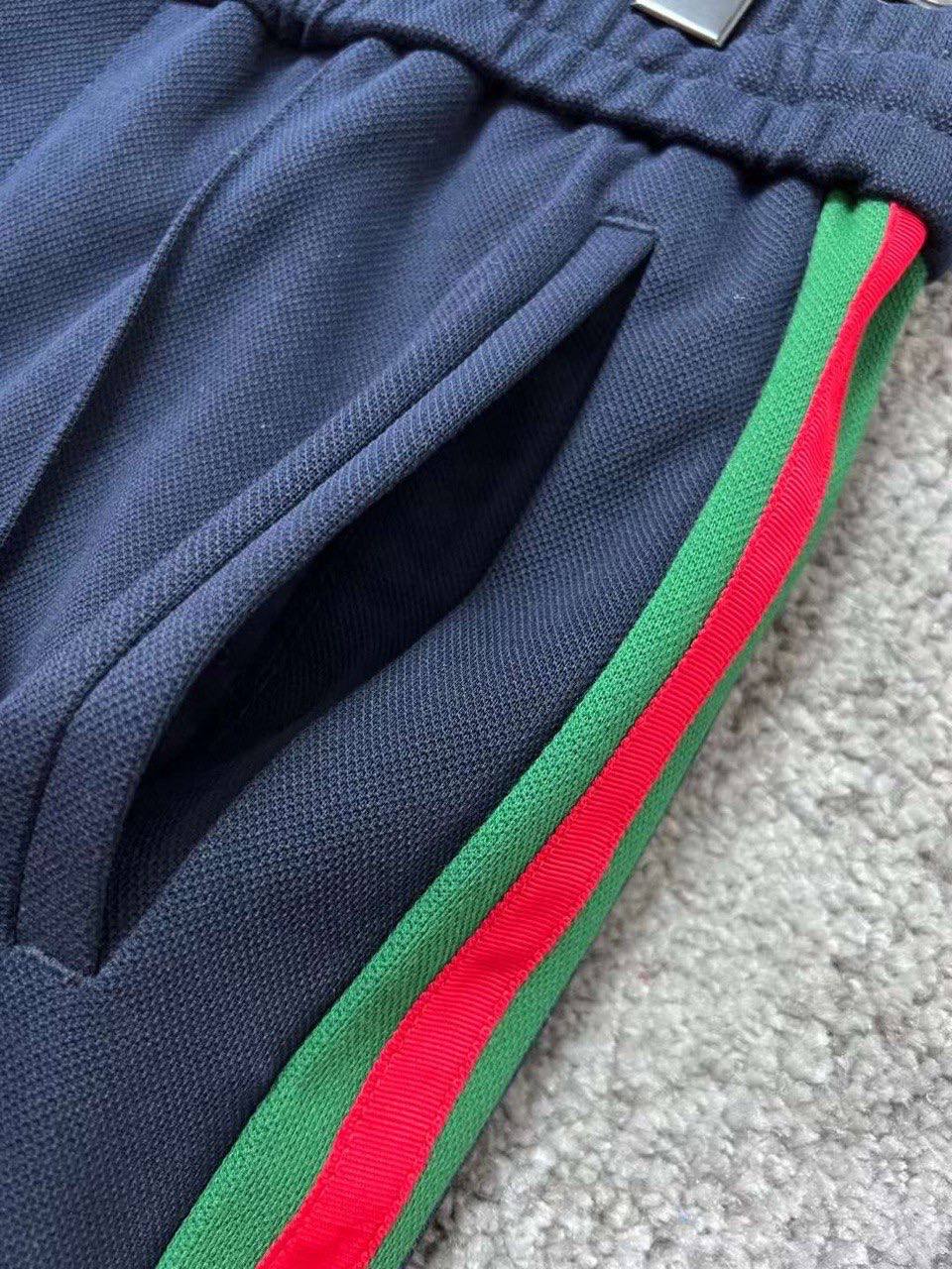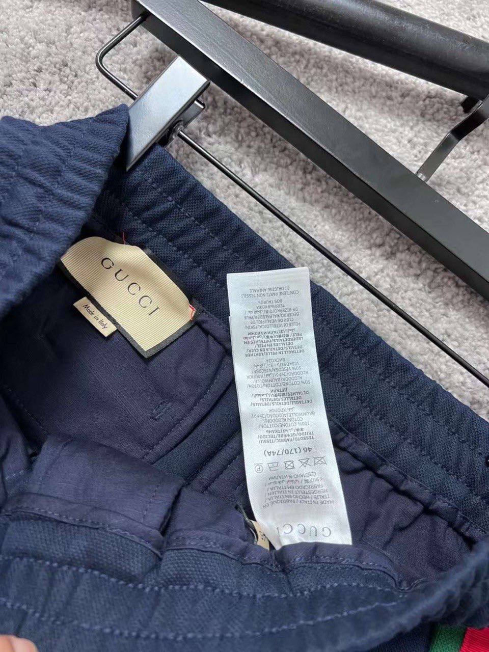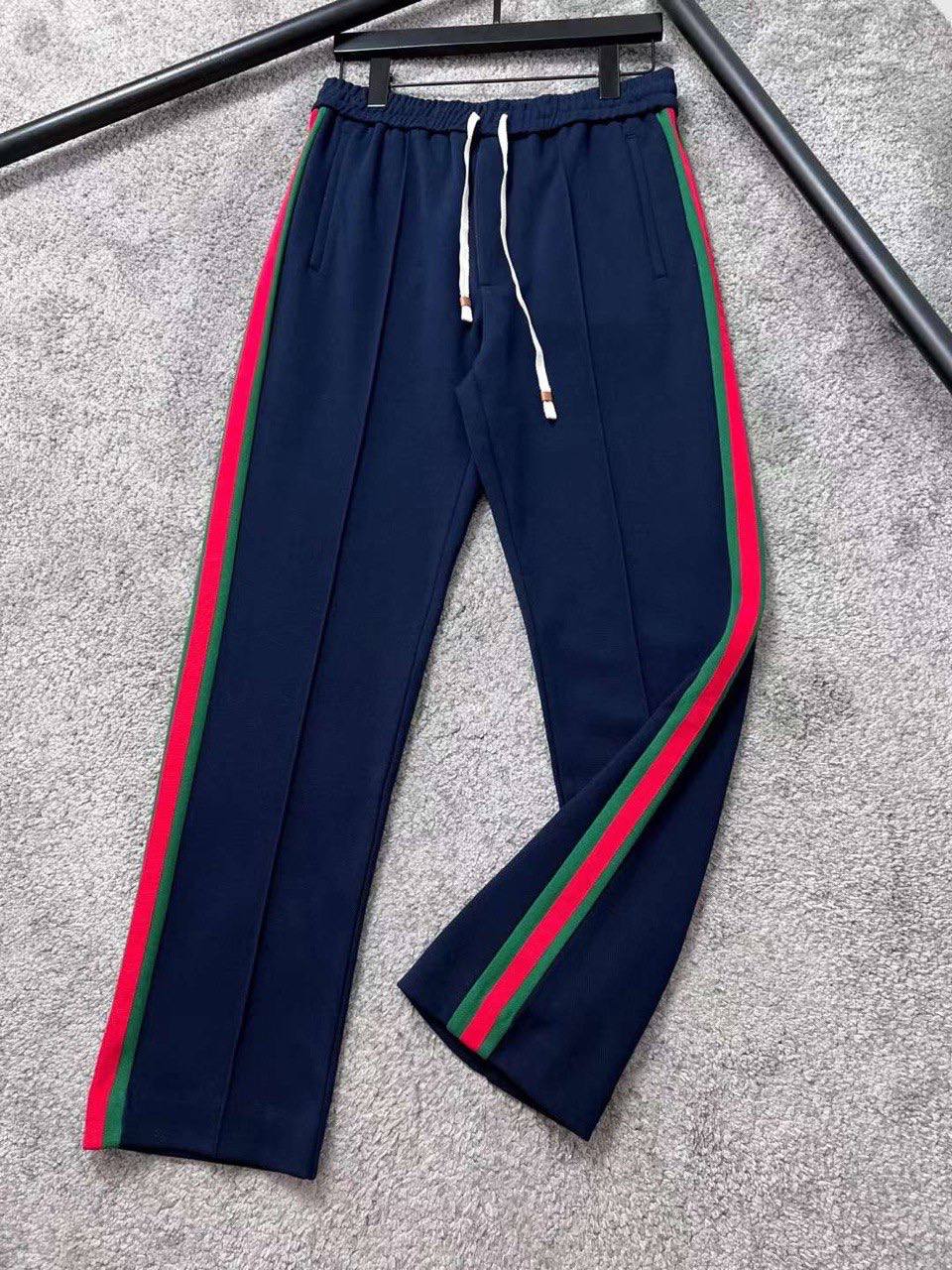 Брюки Gucci LUX-89072 — это стильная и удобная модель в спортивном стиле от известного бренда. Темно-синие брюки с широкими красными и зелеными полосками по бокам, подчеркивающими фирменный стиль. Эти брюки идеально подходят для создания модных и комфортных образов.