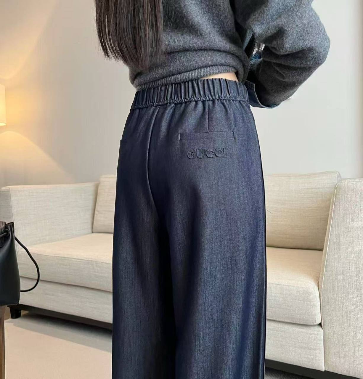 Брюки Gucci LUX-118544 – это стильные широкие брюки темно-синего цвета. Они выполнены в современном стиле и подойдут для различных образов. Брюки имеют свободный крой, что обеспечивает комфорт при носке и делает их подходящими как для повседневной жизни, так и для более формальных мероприятий.
