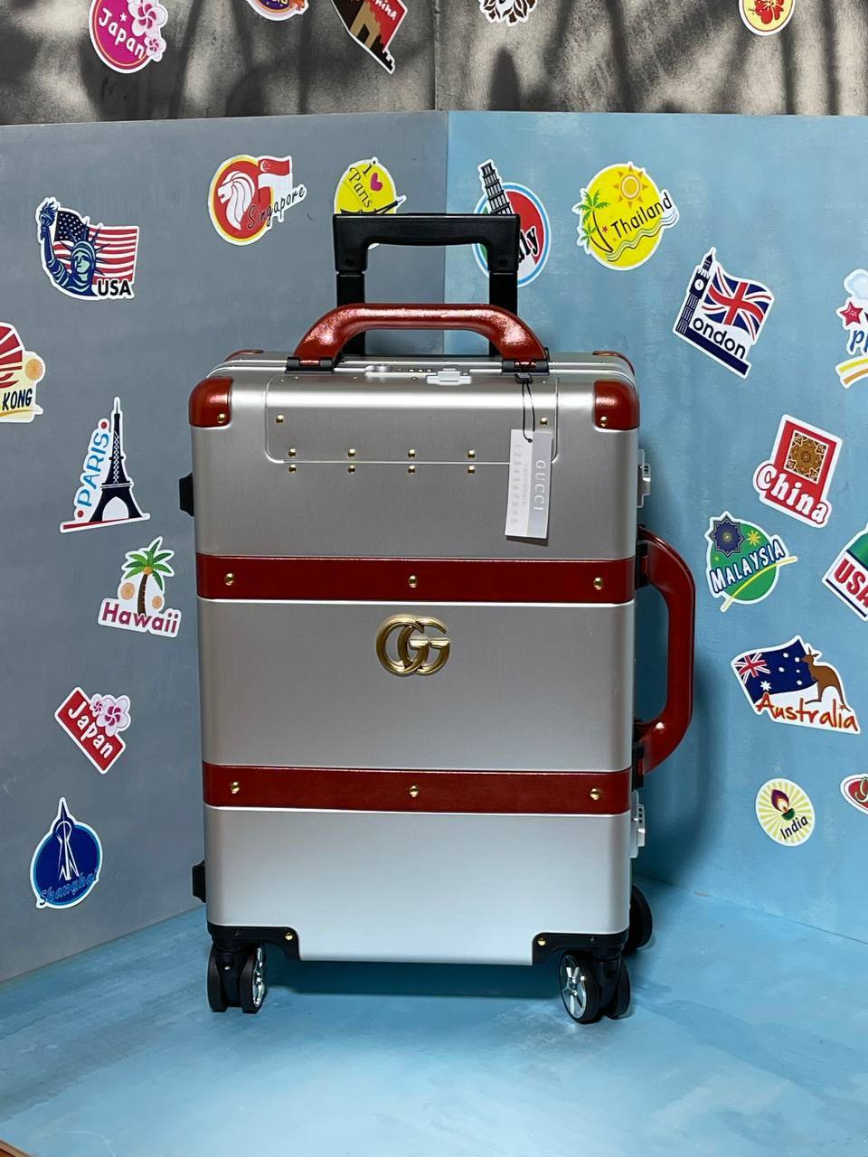 Чемодан 55х35х21см Gucci LUX-80685 – это стильный и функциональный аксессуар для путешествий от Gucci. Чемодан выполнен в серебристом цвете с красными акцентами, что придает ему элегантный вид. Этот чемодан идеально подходит для путешествий, предлагая удобство и роскошь.