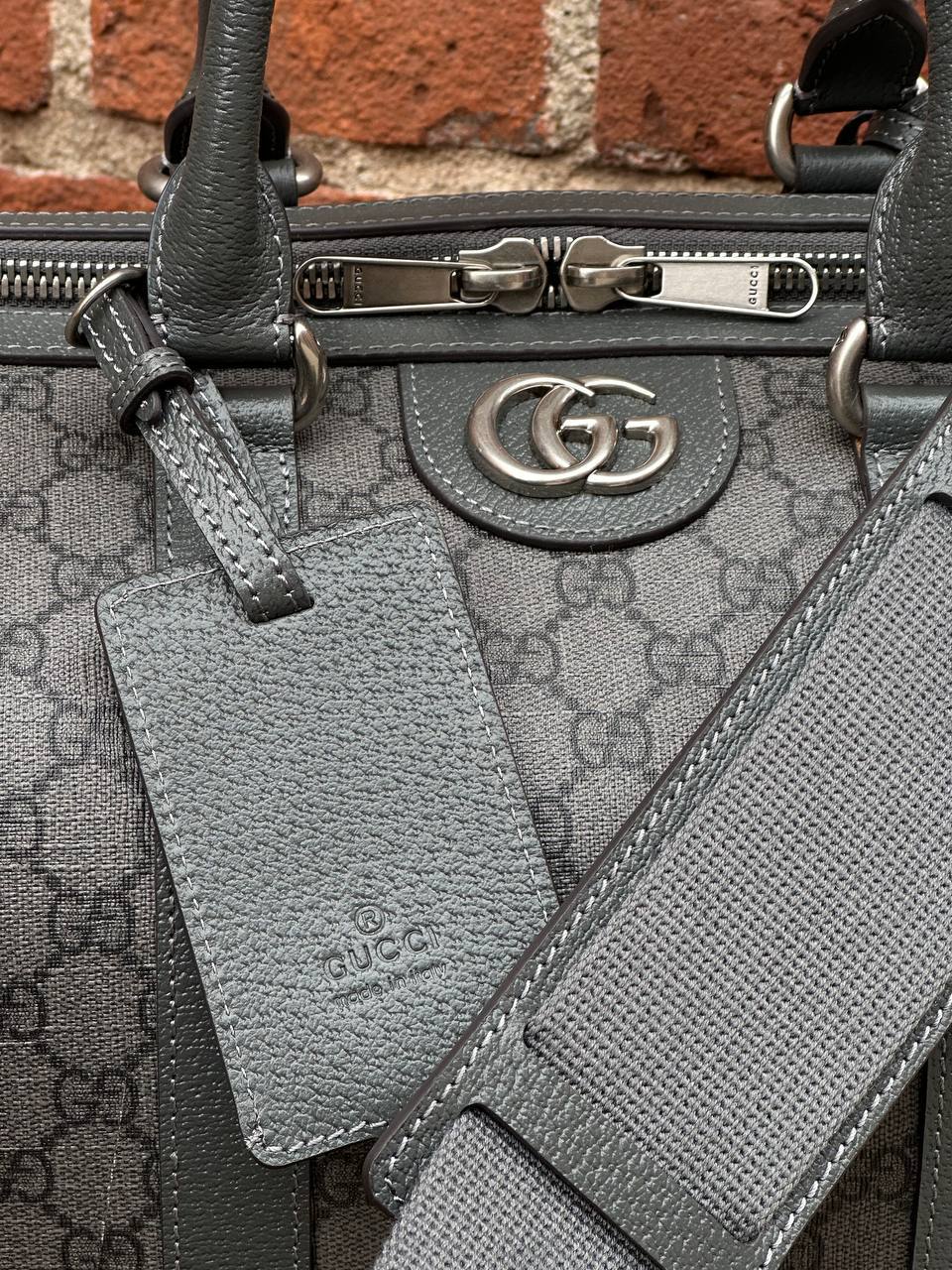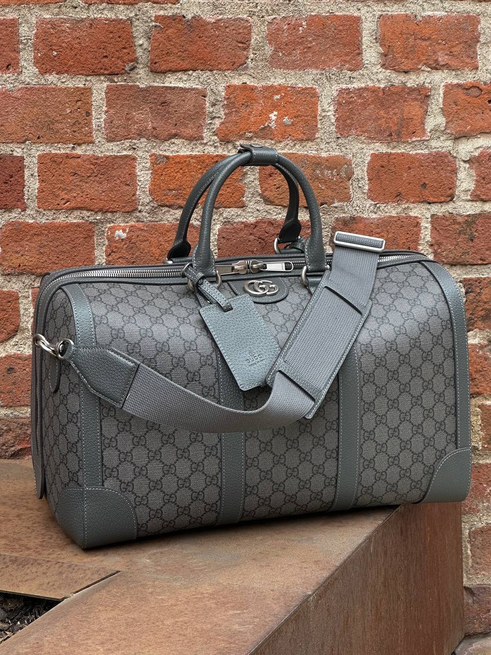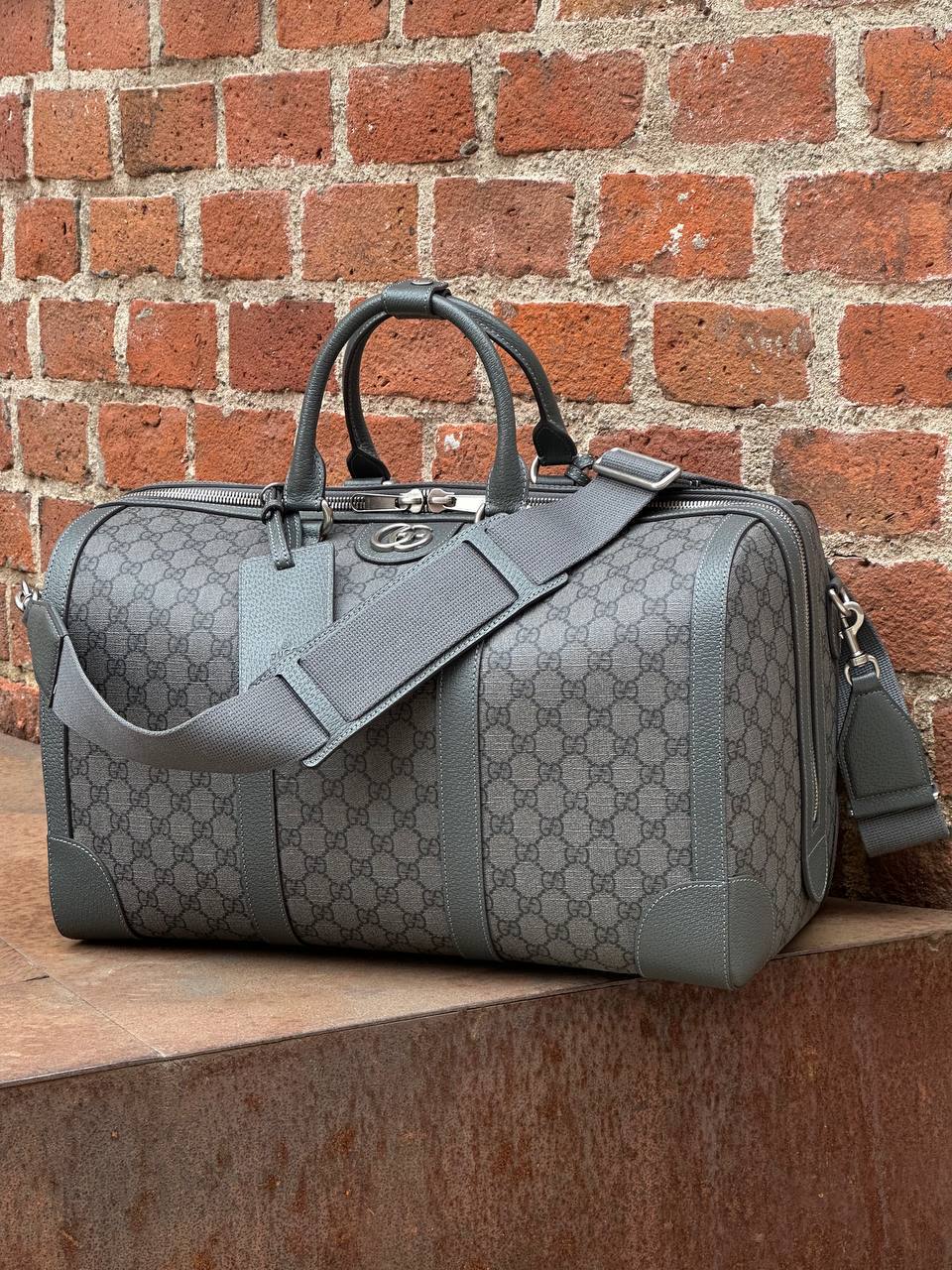 Дорожная сумка Gucci LUX-111138 выполнена в классическом стиле и отражает узнаваемый дизайн бренда. Сумка серого цвета с фирменным узором GG, дополненная серыми кожаными деталями, сочетает в себе элегантность и практичность. Эта дорожная сумка идеально подходит для путешествий, предлагая стиль и функциональность в одном изделии.