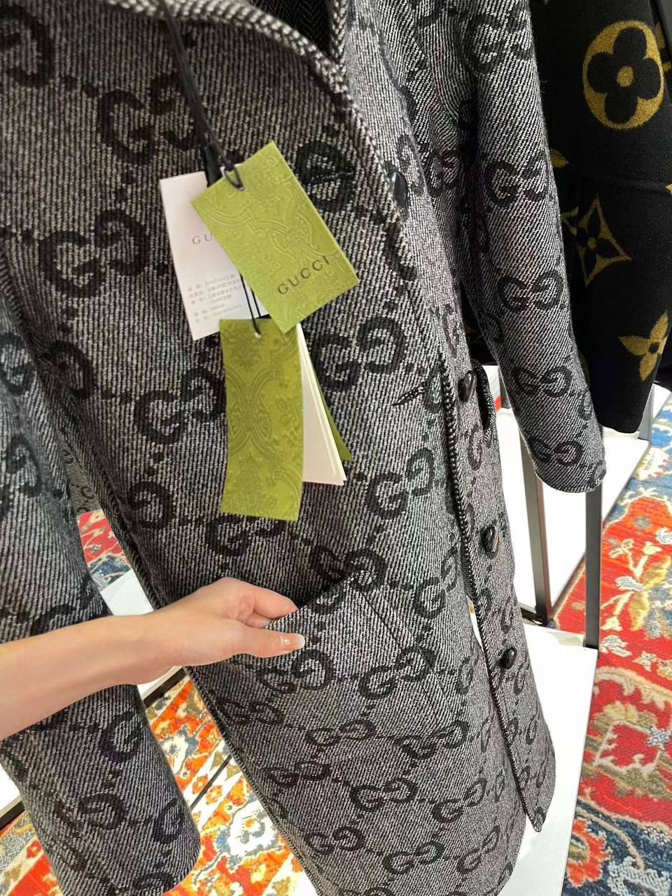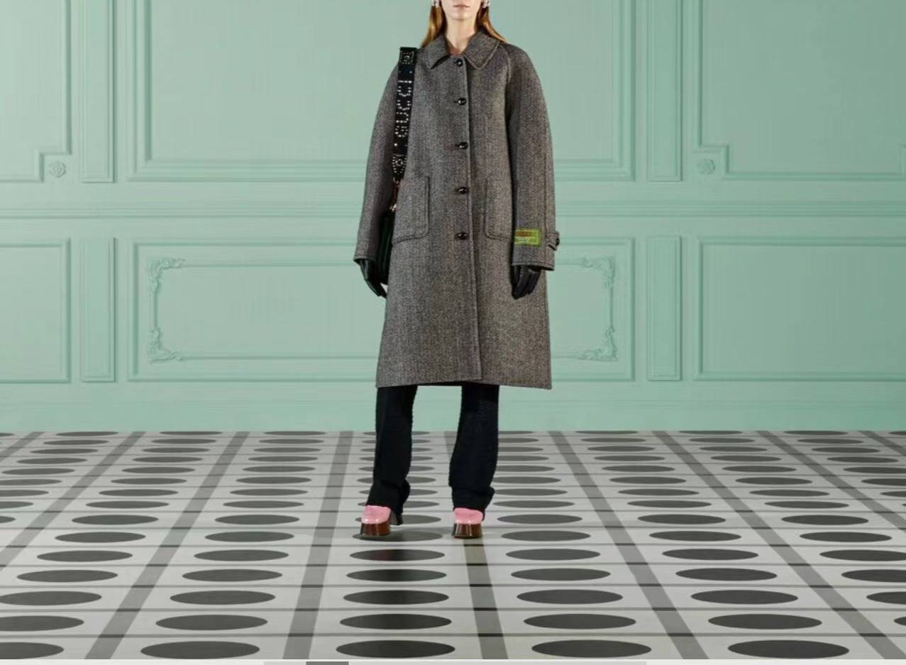 Двухстороннее пальто Gucci LUX-96556 - это стильное и элегантное пальто, которое станет отличным дополнением к вашему гардеробу. Пальто выполнено в нейтральном сером цвете с оригинальной текстурой, что делает его универсальным и подходящим для разных образов. Идеально подходит для повседневной носки в прохладную погоду.