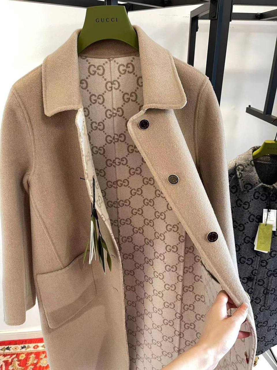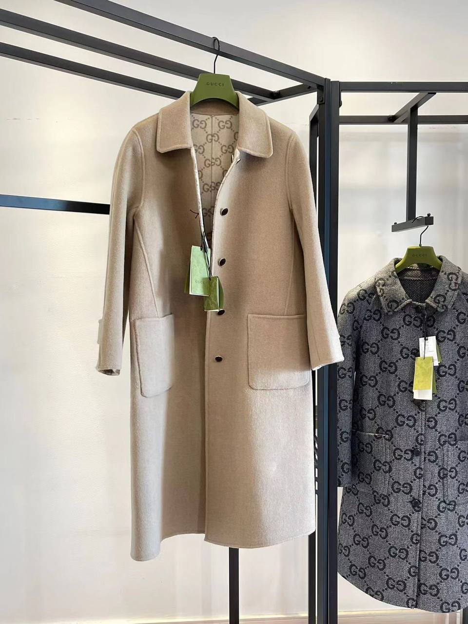 Двухстороннее пальто Gucci LUX-96557 — это воплощение элегантности и стиля от известного бренда. Пальто выполнено в классическом стиле, сочетает в себе изысканность и практичность. Бежевый цвет добавляет универсальности и позволяет легко сочетать пальто с различными элементами гардероба.