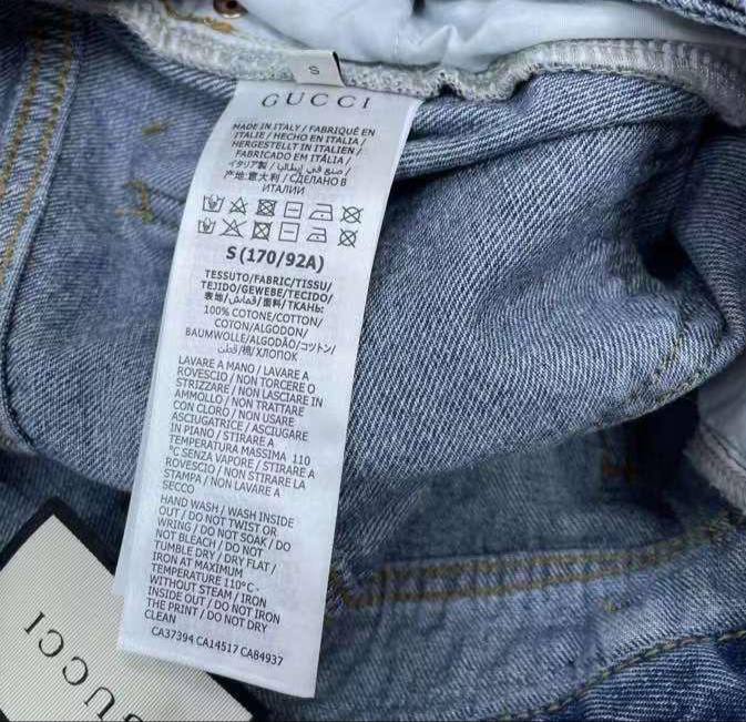 Джинсы Gucci LUX-82655 - это стильная модель, которая сочетает в себе классический деним и современные элементы дизайна. Джинсы выполнены в светло-голубом цвете с текстурой, которая придает им винтажный вид. Они идеально подойдут для создания повседневных и модных образов.