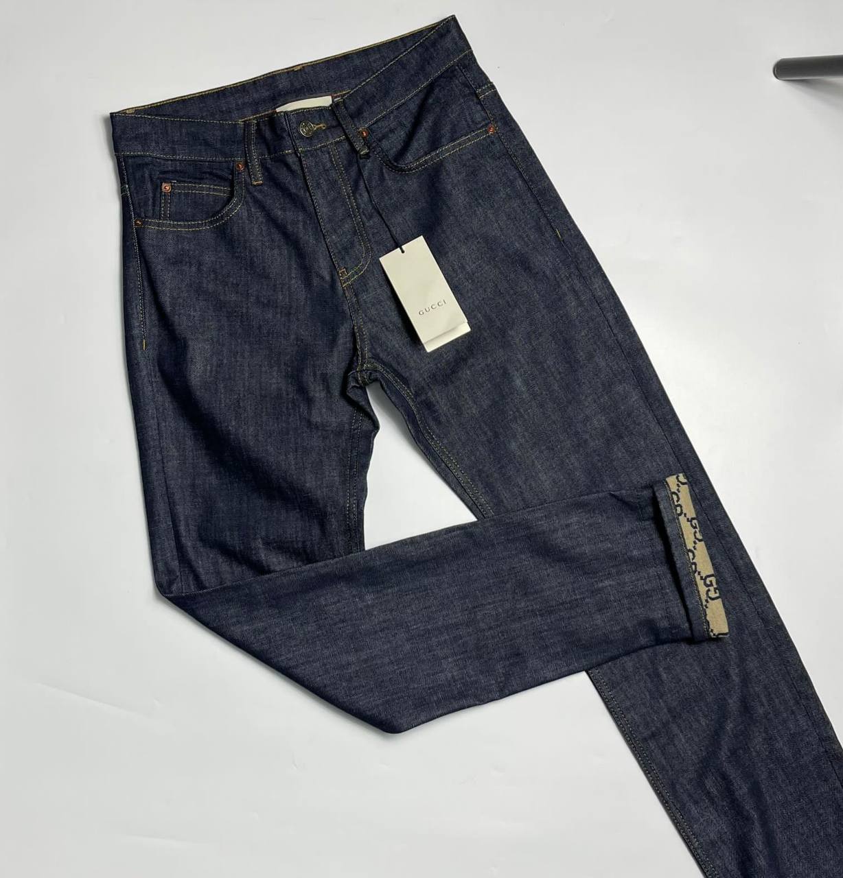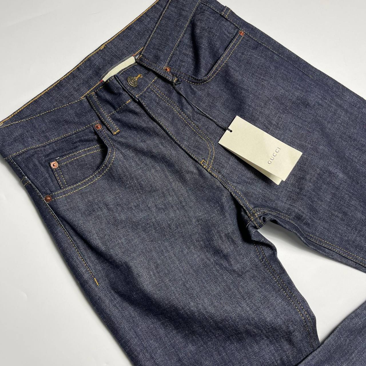 Джинсы Gucci LUX-94263 представляют собой классический образец повседневной одежды от известного бренда. Темно-синий цвет и прямой крой делают их универсальными для создания различных образов. Джинсы подойдут для повседневной носки.
