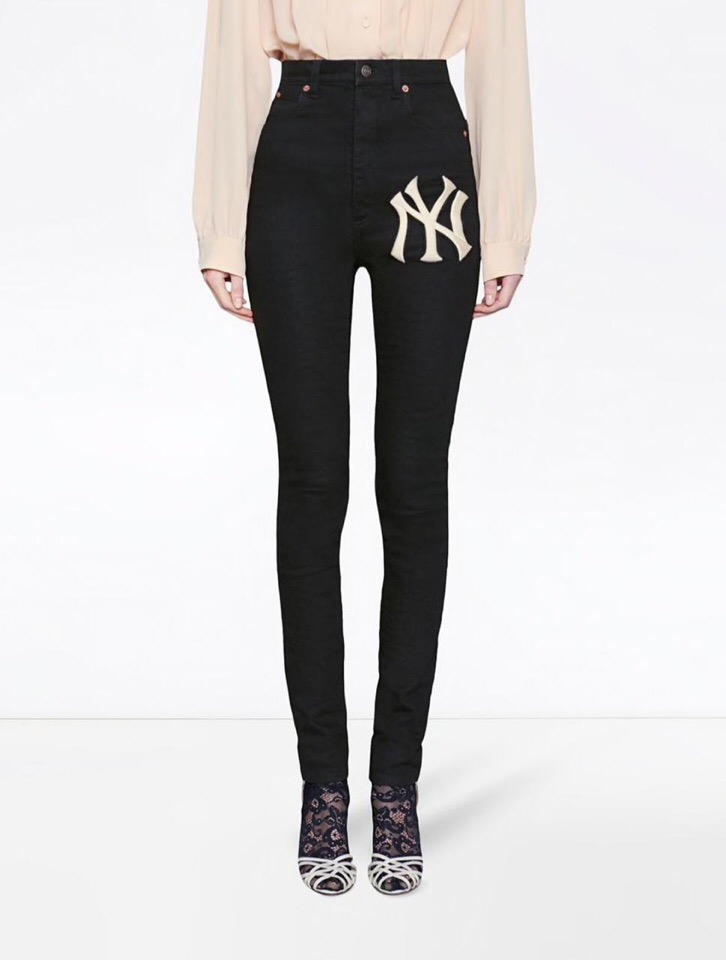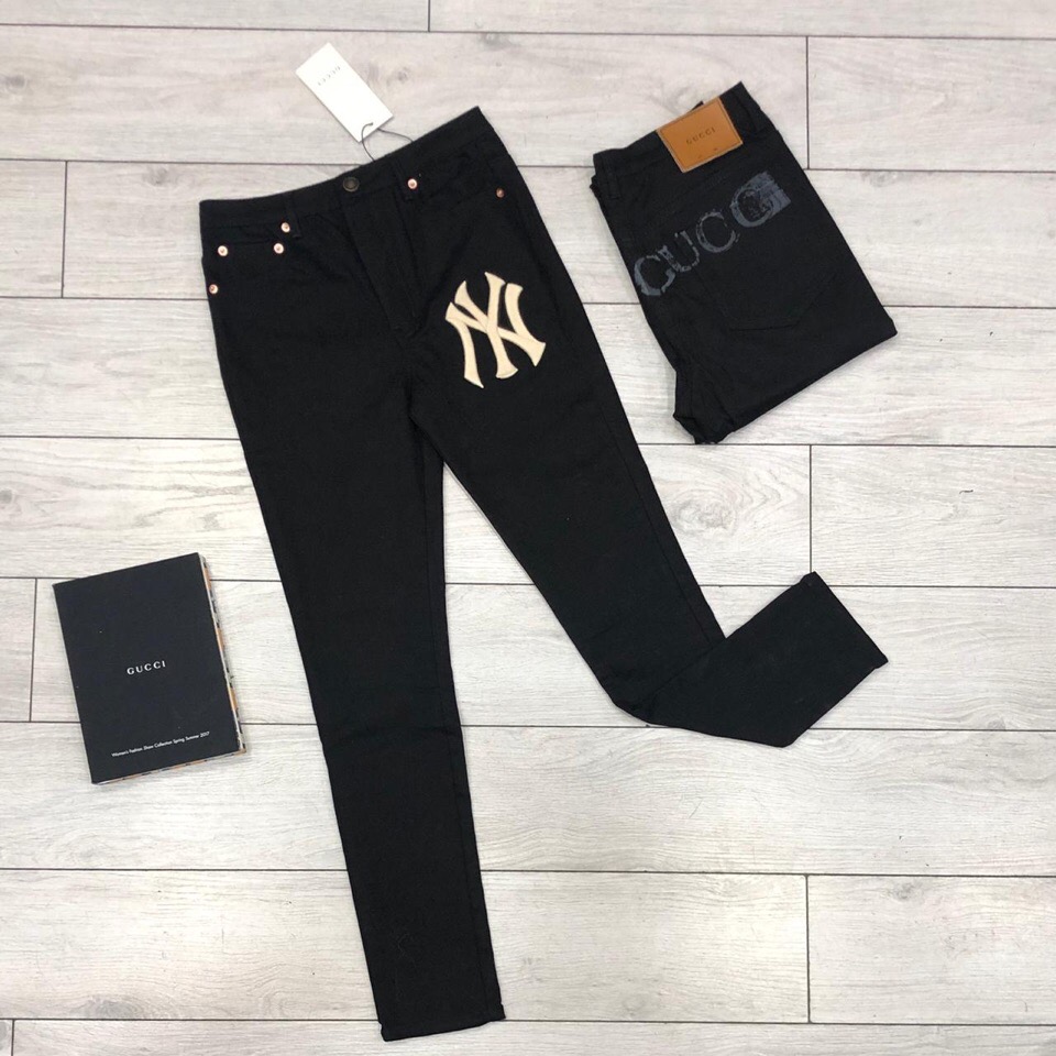 Эти стильные черные джинсы Gucci ОДЖ-1045 с высокой посадкой – идеальный выбор для создания эффектных образов. Их классический крой и акцент в виде вышитого логотипа команды New York Yankees придают им уникальность. Они отлично подойдут для повседневной носки, подчеркивая ваш индивидуальный стиль.