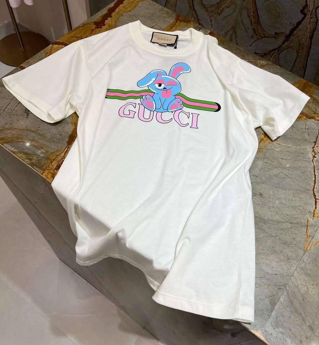 Футболка Gucci LUX-105286 – это стильная футболка от известного бренда, выполненная в повседневном стиле. Основной цвет изделия — белый, с ярким принтом в виде зайца и логотипом бренда. Футболка предназначена для создания модных и комфортных образов.