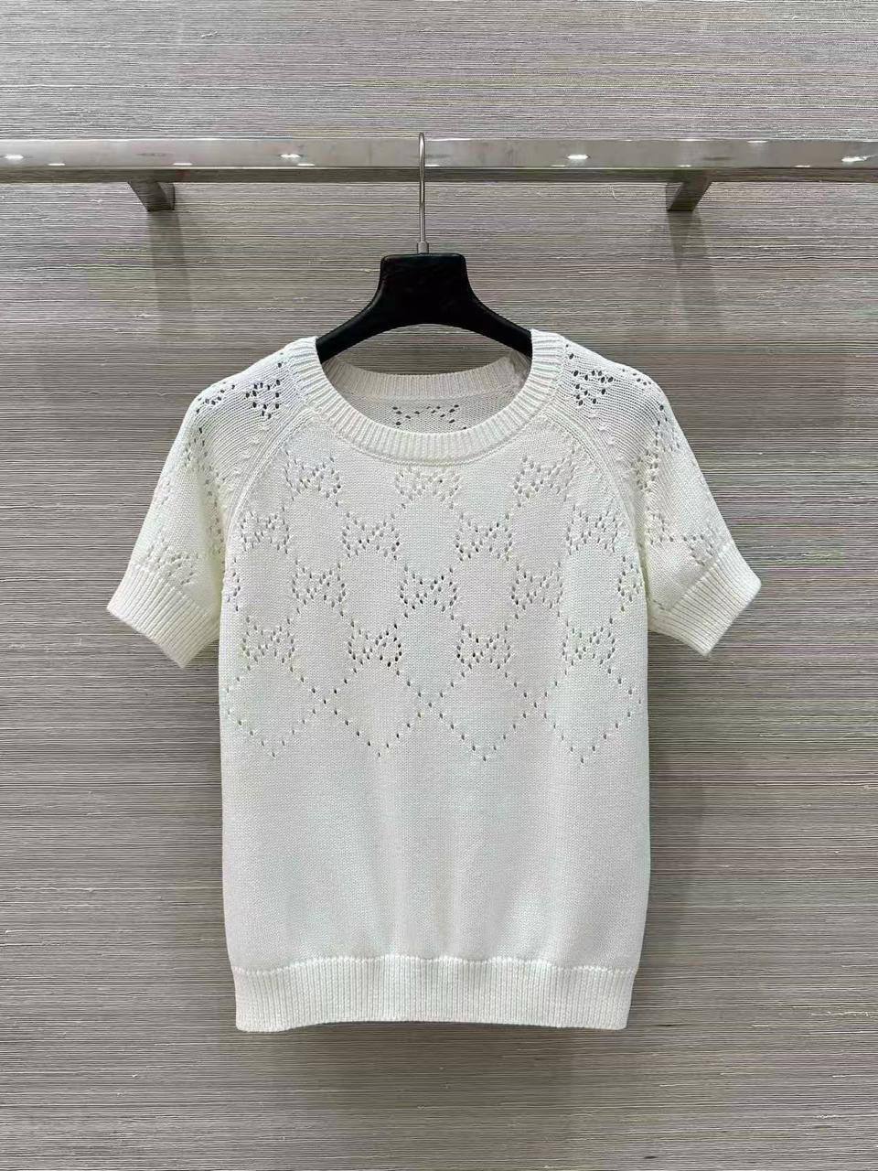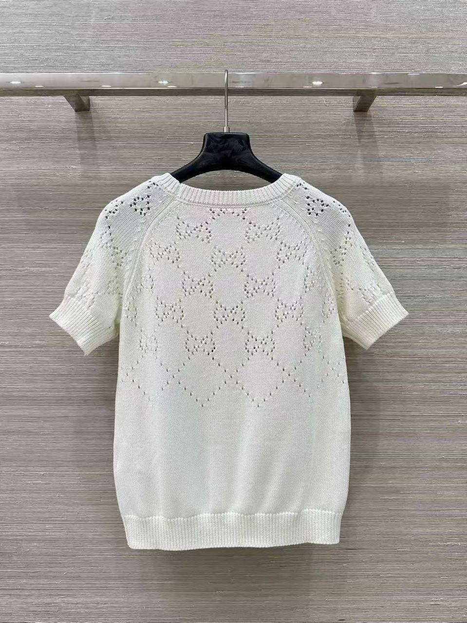 Футболка Gucci LUX-119362 представляет собой стильный и элегантный предмет гардероба. Эта футболка выполнена в белом цвете, что придает ей универсальность и легкость в сочетании с различными элементами одежды. Текстура футболки предполагает узор из небольших отверстий. Идеально подойдет для повседневной носки или для создания более изысканных образов.