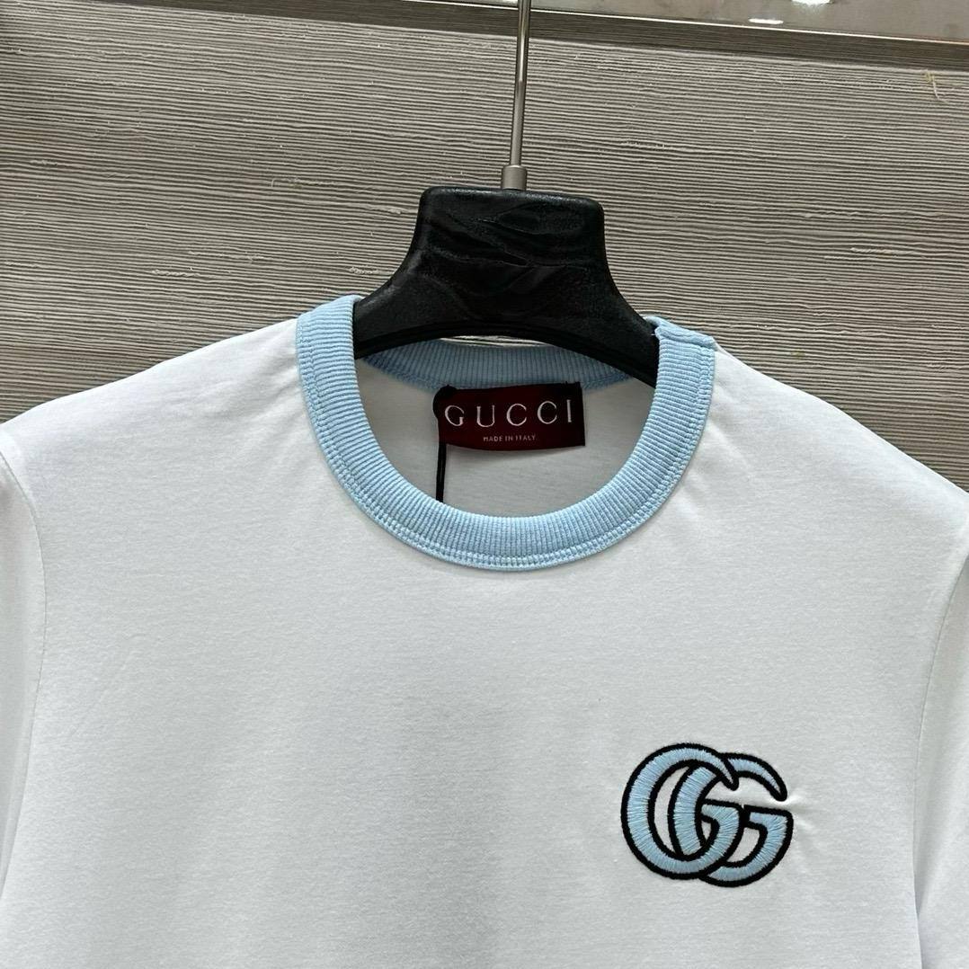 Футболка Gucci LUX-116016 — это воплощение элегантности и узнаваемого стиля. Эта футболка выполнена в классическом стиле, сочетая в себе лаконичность и изысканность. Белый цвет футболки с голубыми деталями создает свежий и современный образ.