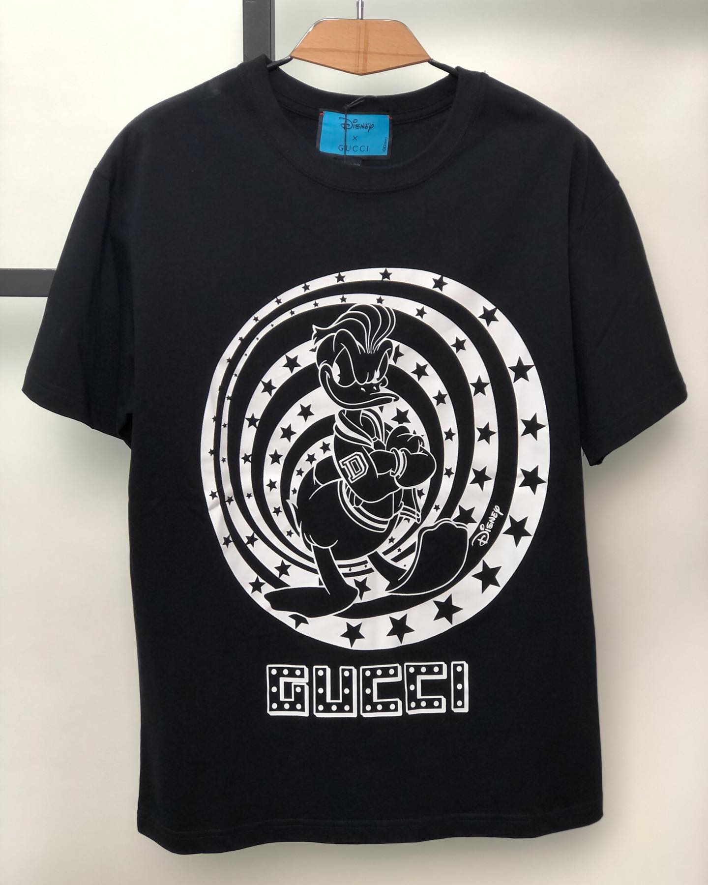 Футболка Gucci LUX-47284 — это стильная черная футболка с уникальным дизайном, сочетающим в себе элементы бренда Gucci и персонажей Disney. Оригинальный принт с изображением Дональда Дака в окружении звезд и логотипа Gucci создает яркий и запоминающийся образ. Эта футболка прекрасно подойдет для тех, кто ценит высокое качество, комфорт и оригинальность в своем гардеробе, позволяя выразить свою индивидуальность.