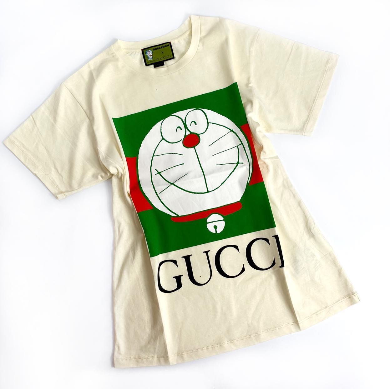 Футболка женская Gucci LUX-43549 — это стильная и уникальная вещь, сочетающая в себе узнаваемый бренд Gucci и популярного персонажа Дораэмона. Данная модель выполнена в кремовом цвете и украшена ярким принтом. Она отлично подойдет для создания повседневных и непринужденных образов, подчеркивая индивидуальность владельца.