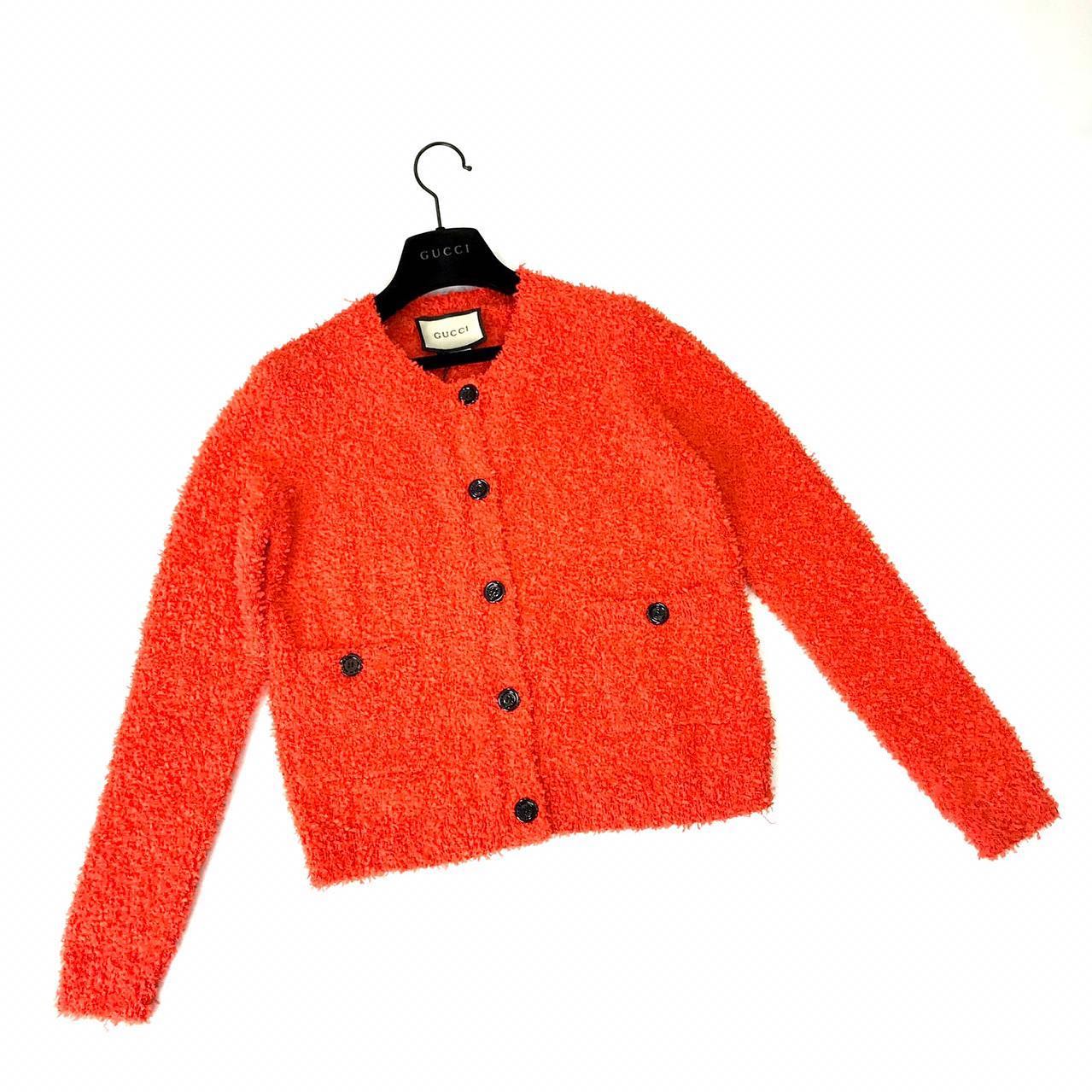 Этот яркий кардиган Gucci LUX-35422 – воплощение стиля и комфорта. Представленный в насыщенном оранжевом цвете, он моментально привлекает внимание своей фактурной поверхностью и элегантным дизайном. Кардиган идеально подойдет для создания модных образов, добавляя нотку роскоши и индивидуальности.