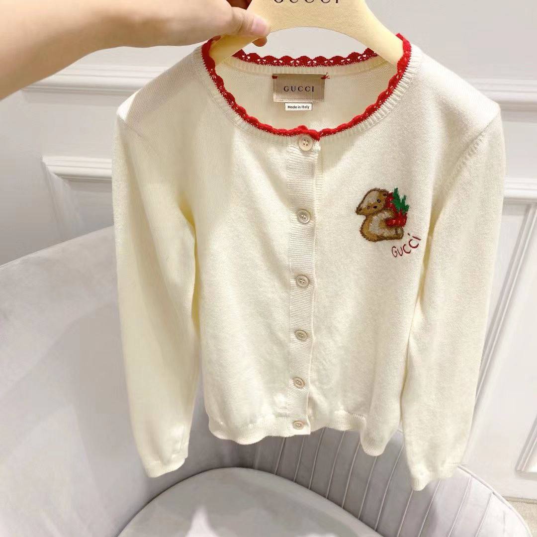 Этот элегантный кардиган Gucci LUX-68622, выполненный в кремовом цвете, станет стильным дополнением к вашему гардеробу. Он украшен очаровательной вышивкой в виде зверька с ягодами и контрастной красной отделкой по горловине, придавая изделию игривый и утонченный вид. Кардиган застегивается на пуговицы и идеально подходит для создания как повседневных, так и более нарядных образов.