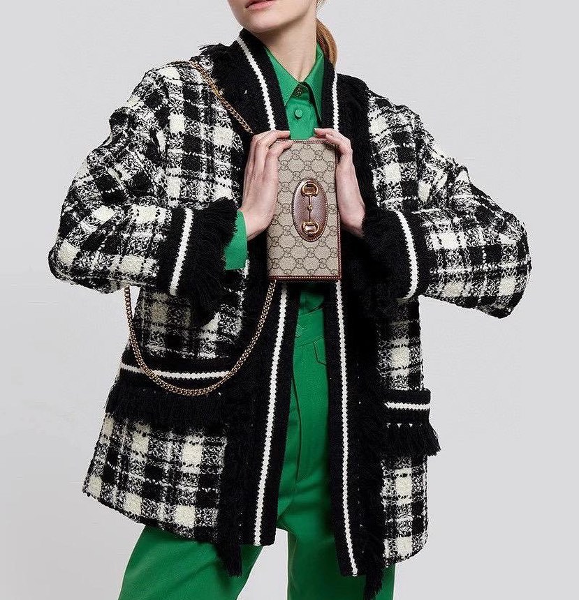 Элегантный кардиган Gucci LUX-44323 представляет собой стильное решение для современной женщины. Модель выполнена в эффектном черно-белом клетчатом узоре, дополненном черной бахромой и контрастными белыми полосами. Этот кардиган от Gucci идеально подойдет как для повседневных образов, так и для особых случаев, добавляя изысканности любому наряду.
