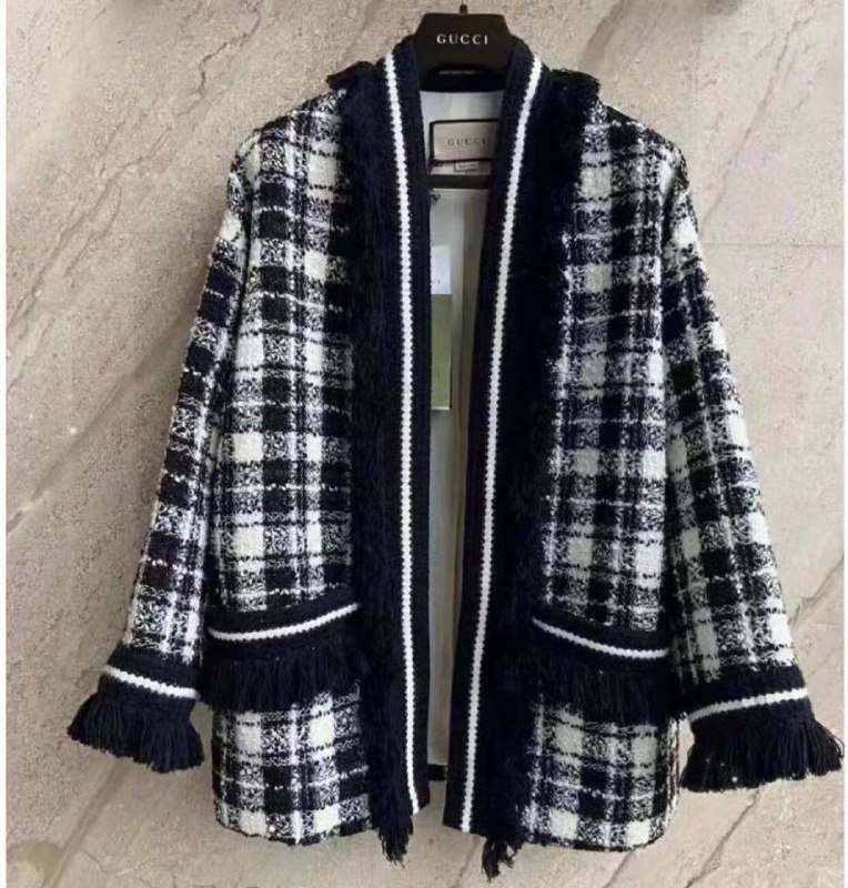 Кардиган Gucci LUX-48457 — это стильная и элегантная вещь, идеально подходящая для тех, кто ценит роскошь и утонченность. Данная модель выполнена в классическом клетчатом узоре, характерном для бренда Gucci, и украшена контрастными полосами и бахромой, добавляющими изделию текстуры и выразительности. Этот кардиган станет отличным дополнением как к повседневному, так и к более изысканному образу, подчеркивая вашу индивидуальность.
