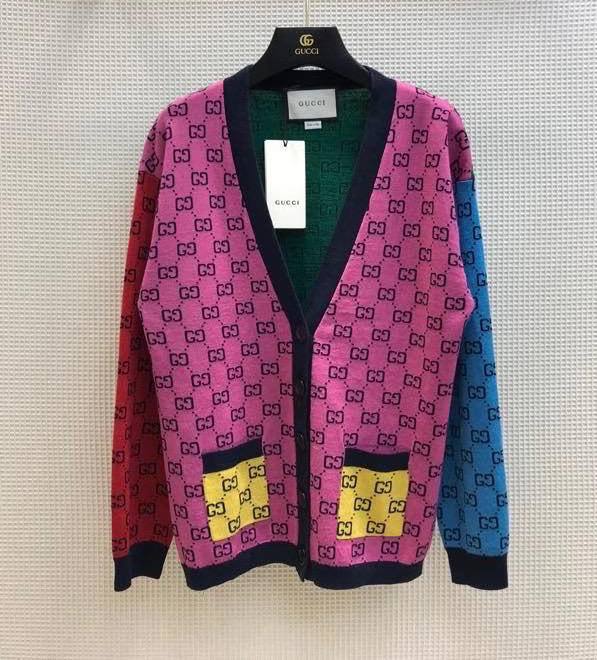 Этот яркий кардиган Gucci LUX-49804 представляет собой эффектный элемент гардероба в стиле унисекс. Его оригинальный дизайн, сочетающий разноцветные блоки и фирменный монограммный узор GG, делает его заметным и стильным выбором. Модель с V-образным вырезом и двумя накладными карманами идеально подходит для создания непринужденных, но элегантных образов.