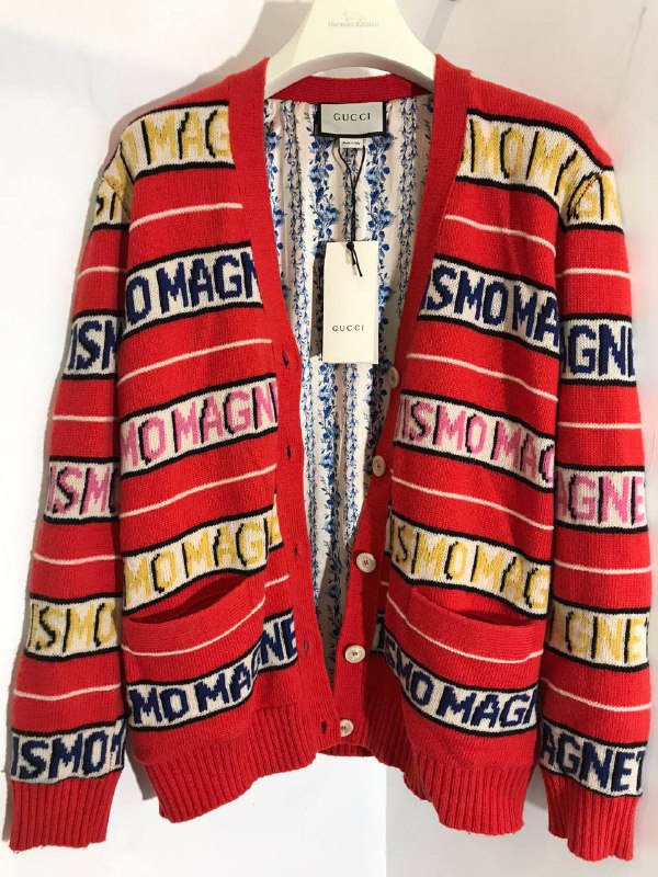 Этот яркий кардиган Gucci LUX-56164 – стильное дополнение к повседневному образу. Кардиган выполнен в красно-белую полоску с контрастным принтом-надписью, что придает ему оригинальности. Отлично подойдет для создания эффектных образов.
