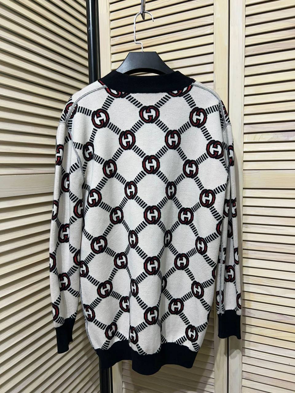 Кардиган Gucci LUX-89251 - это элегантный предмет гардероба от известного бренда. Кардиган выполнен в белом цвете с узнаваемым узором в виде логотипов бренда. Этот кардиган станет прекрасным дополнением к повседневному или более формальному образу.