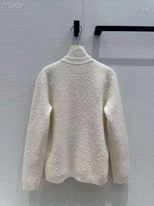 Кардиган Gucci LUX-110606 — это элегантное изделие в классическом стиле. Выполнен в кремовом оттенке с текстурированной поверхностью. Кардиган имеет V-образный вырез, застегивается на пуговицы и дополнен двумя накладными карманами с декоративными элементами.