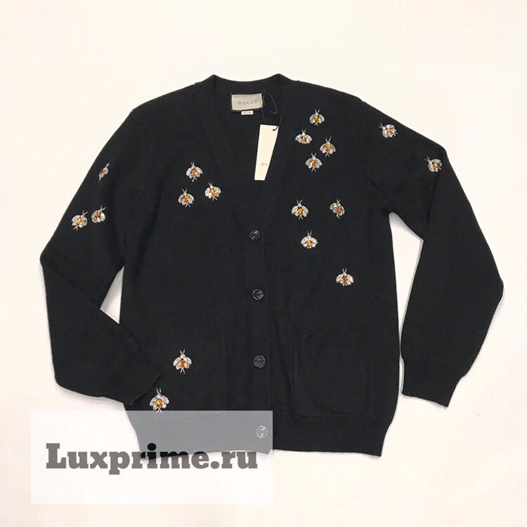 Кардиган Gucci ОДЖ-860 – это изысканный предмет гардероба, выполненный в черном цвете и украшенный вышивкой в виде пчел, что придает ему особый шарм. Эта модель от Gucci прекрасно дополнит ваш образ, добавив элегантности и стиля. Кардиган застегивается на пуговицы и имеет два накладных кармана.