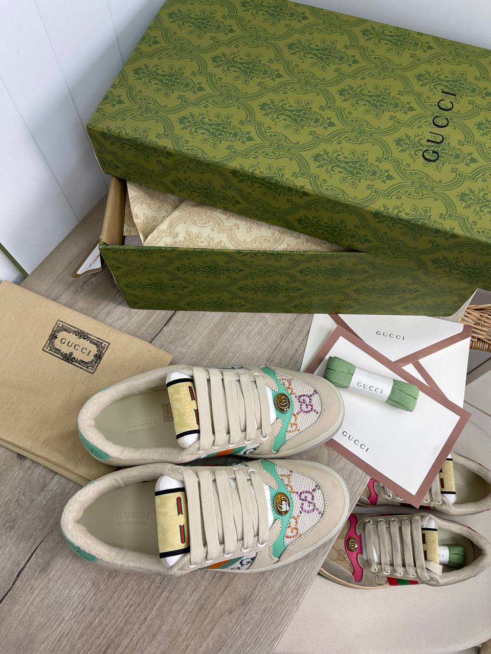 Кеды Gucci LUX-89430 — это стильная обувь для повседневной носки от известного итальянского бренда. Они сочетают в себе элементы классики и современности, создавая уникальный образ. Кеды выполнены в нейтральных тонах с яркими акцентами, что делает их универсальными для разных нарядов.