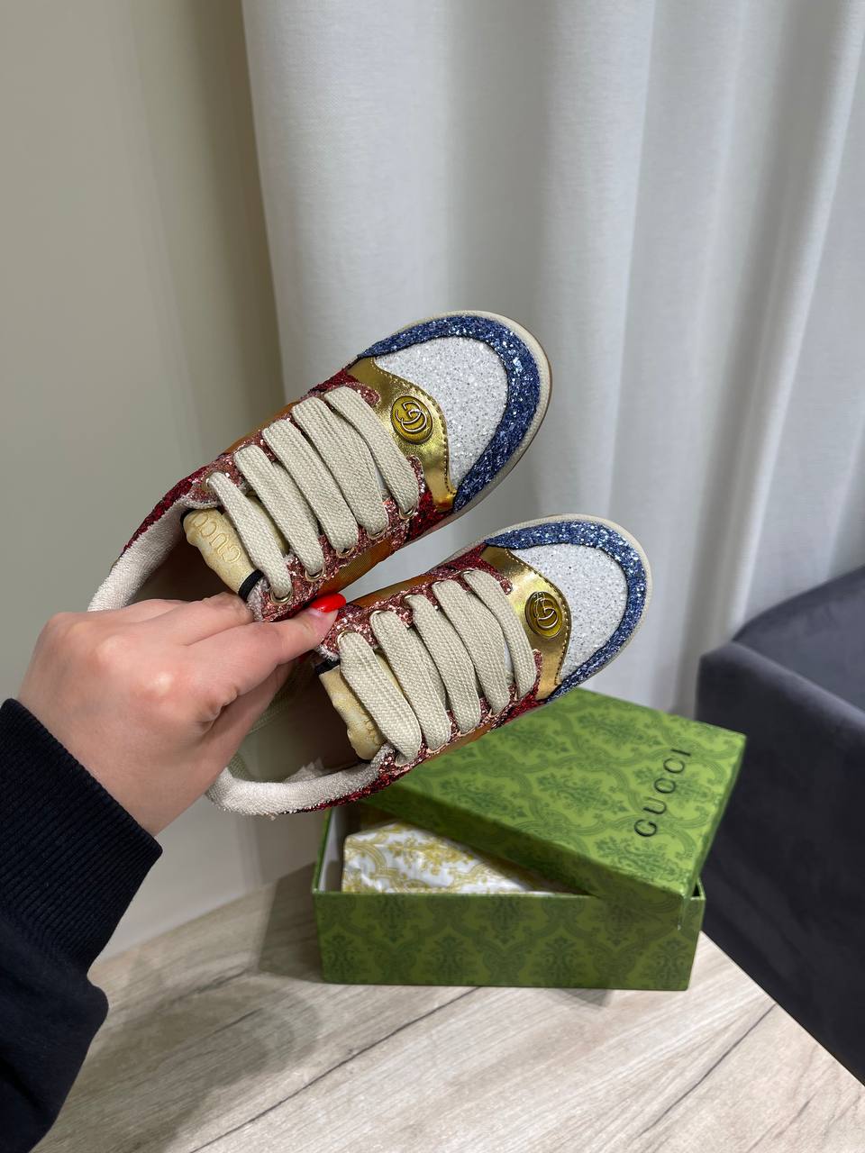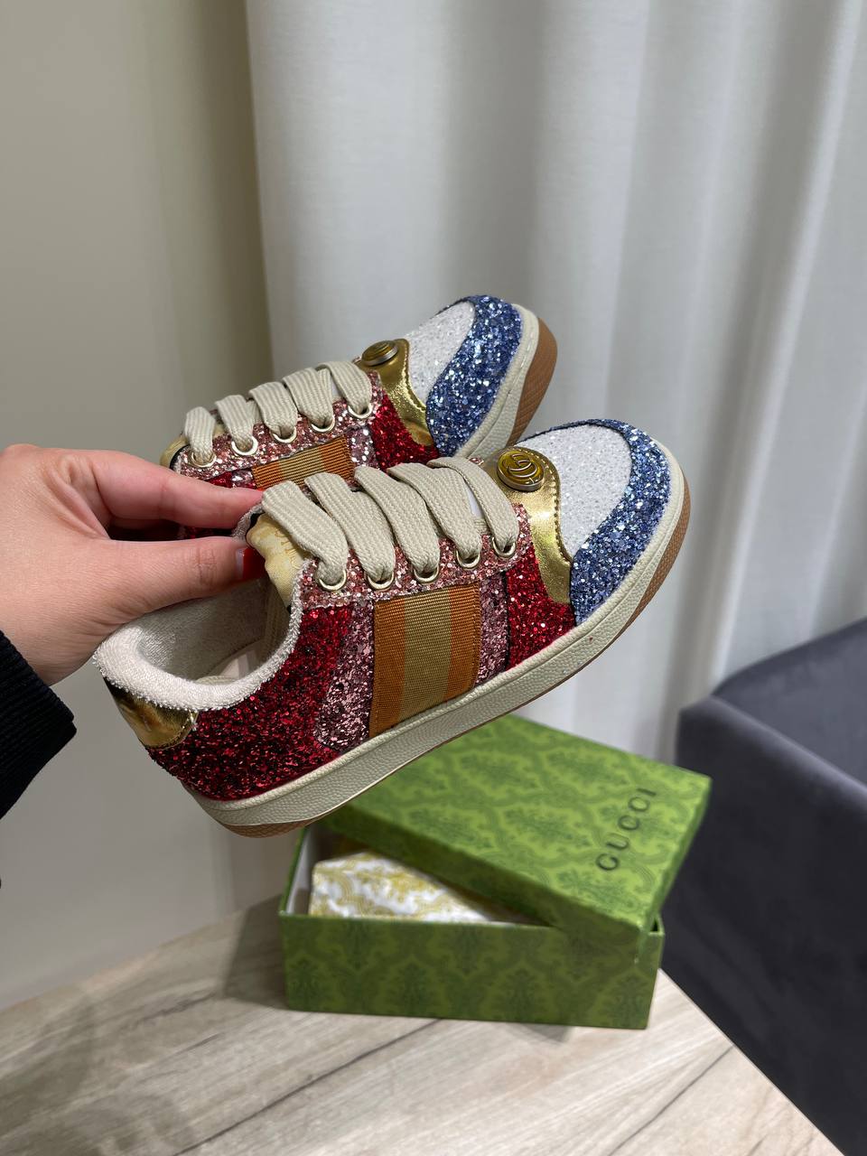 Кеды Gucci LUX-118623 — это стильная обувь для повседневной носки. Кеды сочетают в себе яркий дизайн и комфорт. Обувь украшена блестками и выполнена в разноцветной гамме.