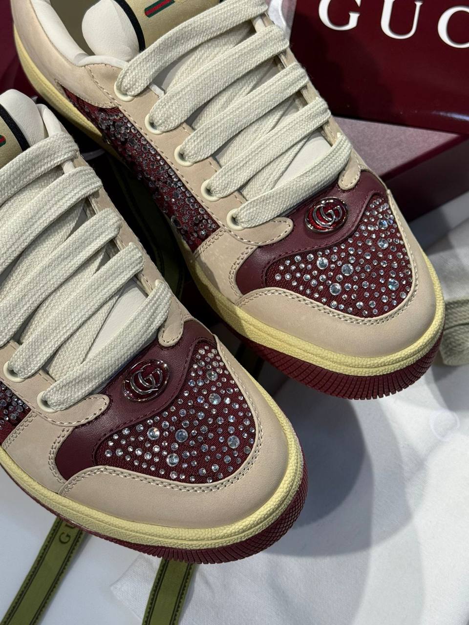 Эти стильные кеды от Gucci сочетают в себе элегантность и комфорт. Они идеально подойдут для создания яркого и запоминающегося образа.