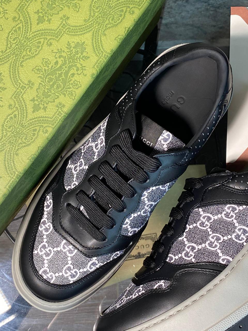 Кеды мужские Gucci LUX-98395 — это стильная обувь, сочетающая в себе элегантность и комфорт. Кеды выполнены в классическом стиле, сочетающем черный цвет с фирменным узором бренда. Эта модель идеально подходит для создания модных повседневных образов.