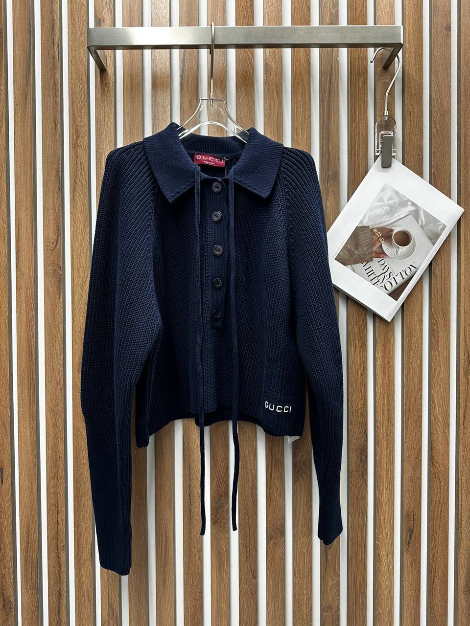 Кофта Gucci LUX-112024 - это стильный предмет гардероба, который подчеркнет индивидуальность. Кофта выполнена в классическом стиле, глубокого синего цвета. Идеально подходит для создания элегантных и повседневных образов.