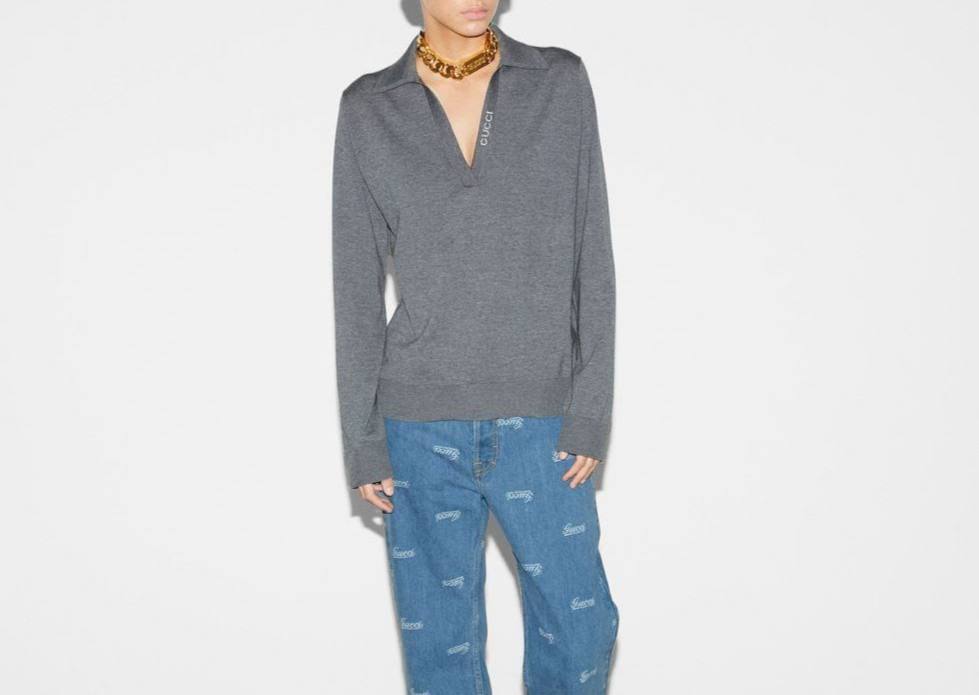 Кофта Gucci LUX-115109 – это стильный элемент гардероба, сочетающий в себе изысканный дизайн и комфорт. Серая кофта с длинными рукавами и воротником-поло, создана для современных образов. Она идеально подойдет как для повседневных прогулок, так и для создания более формальных нарядов.