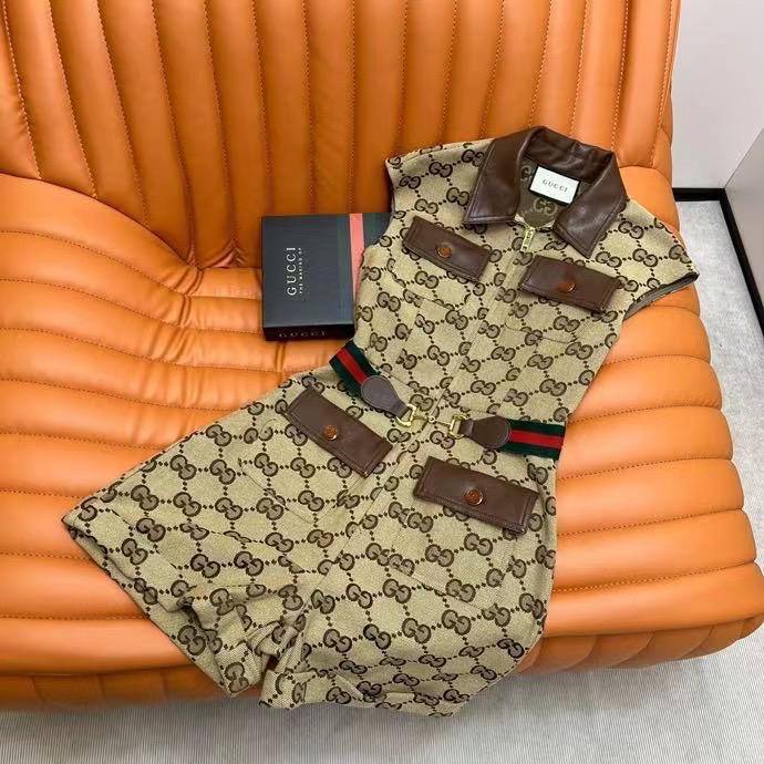 Комбинезон Gucci LUX-68083 представляет собой стильный предмет одежды, выполненный в фирменном стиле бренда. Дизайн сочетает в себе узнаваемый монограммный узор Gucci с элементами утилитарности, что делает его универсальным решением для создания эффектных образов. Короткие рукава и шорты придают модели легкости и непринужденности.