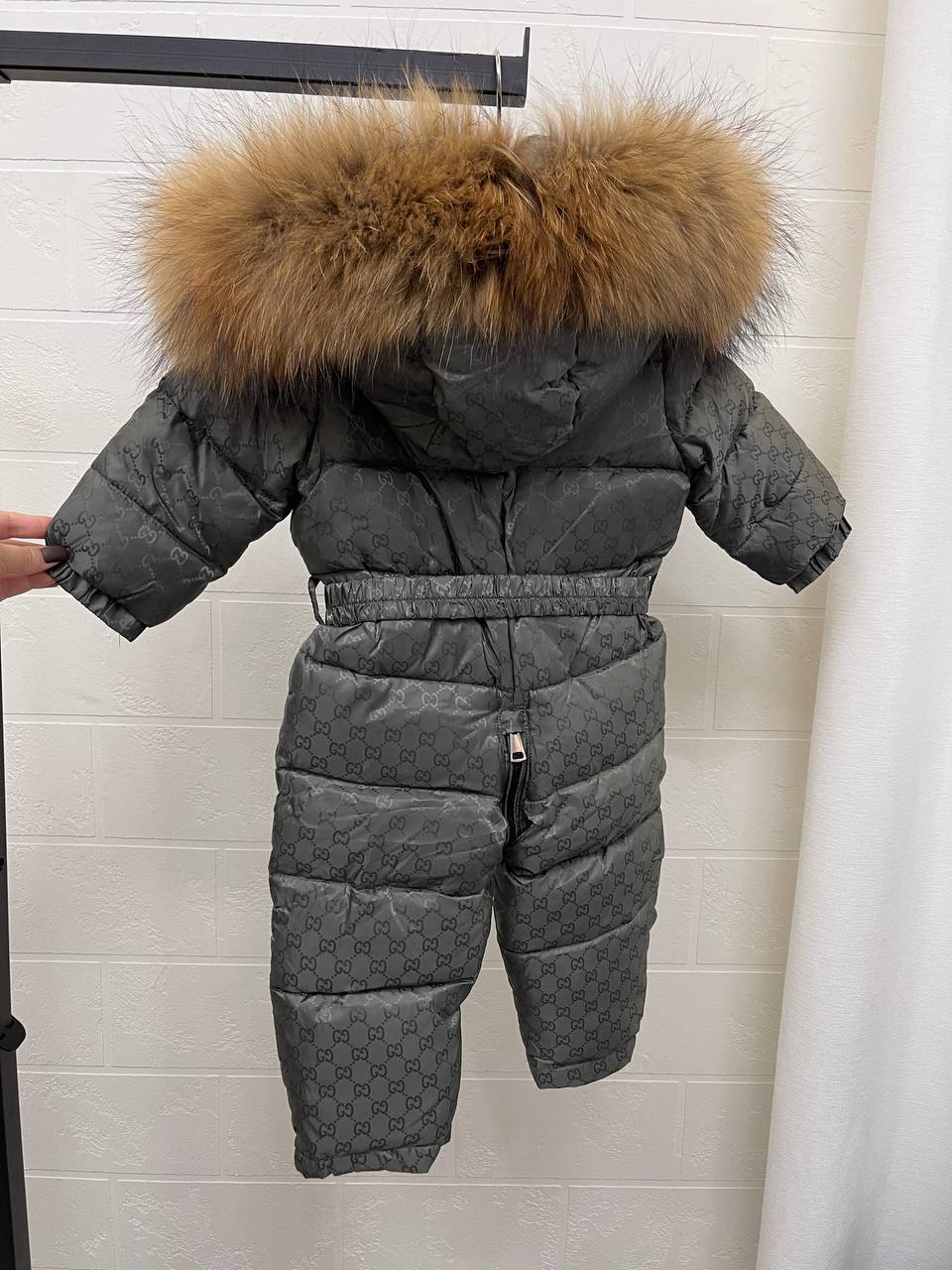 Комбинезон Gucci LUX-97871 — это зимний комбинезон премиум класса для детей. Модель выполнена в темно-сером цвете с узнаваемым монограммным принтом Gucci. Комбинезон дополнен натуральным мехом на капюшоне и ремнем с пряжкой, подчеркивающим талию.