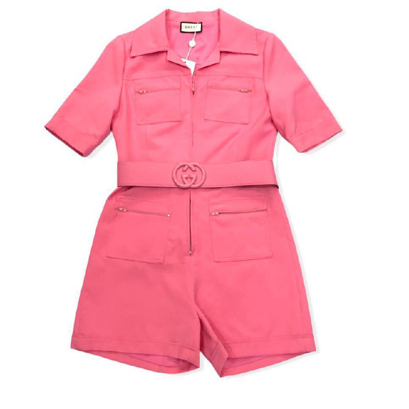 Комбинезон Gucci LUX-51102 представляет собой стильное и элегантное решение для современного гардероба. Этот комбинезон, выполненный в ярком розовом цвете, сочетает в себе удобство и изысканный дизайн, характерный для бренда Gucci. Классический крой с воротником и застежкой-молнией дополнен эффектным поясом с логотипом бренда, подчеркивающим талию.