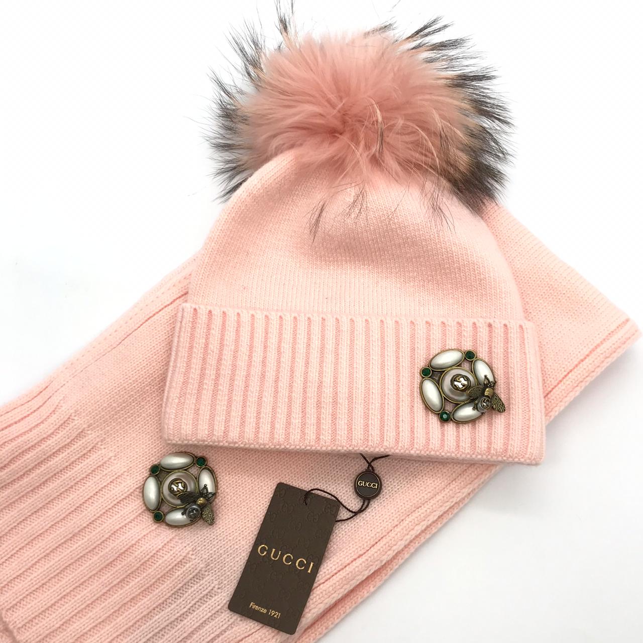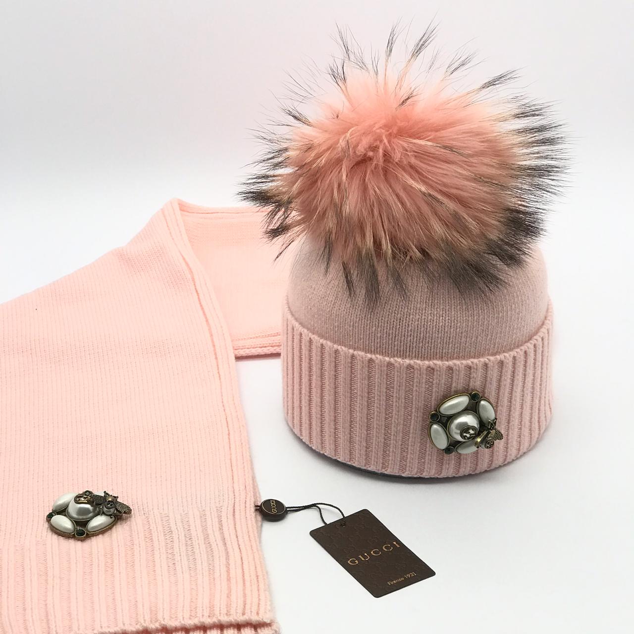 Этот комплект Gucci LUX-24004, состоящий из шапки и шарфа, выполнен в нежном розовом цвете и идеально подходит для создания элегантных зимних образов. Эффектный меховой помпон на шапке и изысканные декоративные броши с жемчугом и кристаллами придают изделию роскошный вид, подчеркивая изысканный вкус обладательницы.