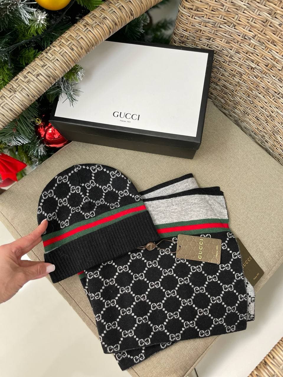 Комплект Gucci LUX-61339 представляет собой стильный аксессуар для создания элегантных образов. Этот набор, выполненный в классическом стиле бренда, подчеркнет ваш изысканный вкус. Комплект включает в себя шапку и шарф, украшенные узнаваемым логотипом Gucci и фирменными полосами.