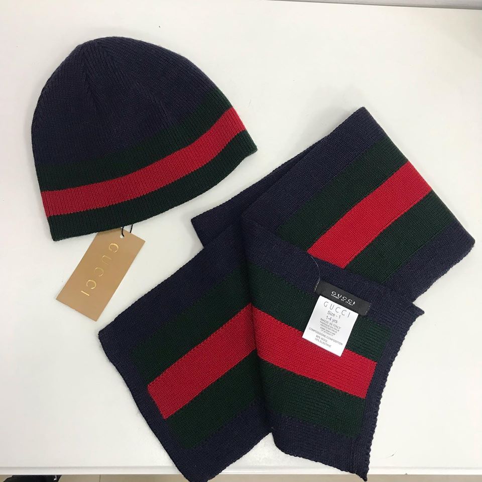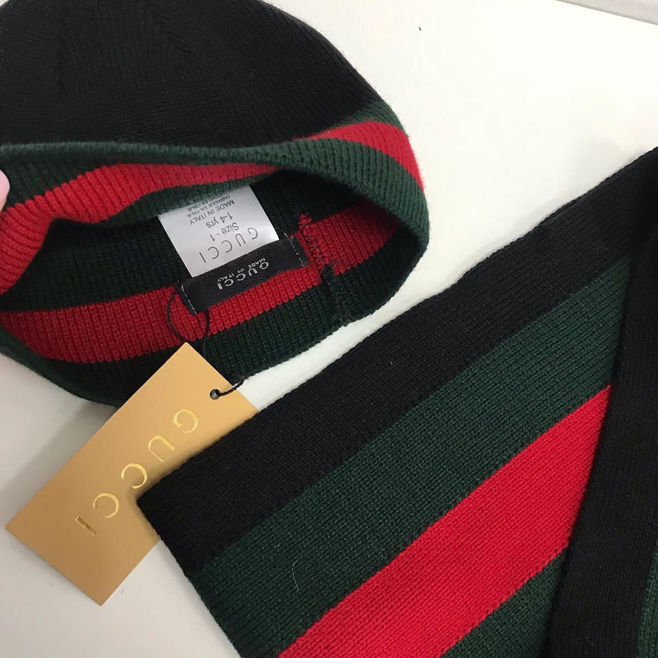 Этот комплект от Gucci, состоящий из шапки и шарфа, выполнен в классическом стиле бренда с узнаваемыми полосами. Изделия идеально подойдут для создания стильных и теплых образов в холодное время года.