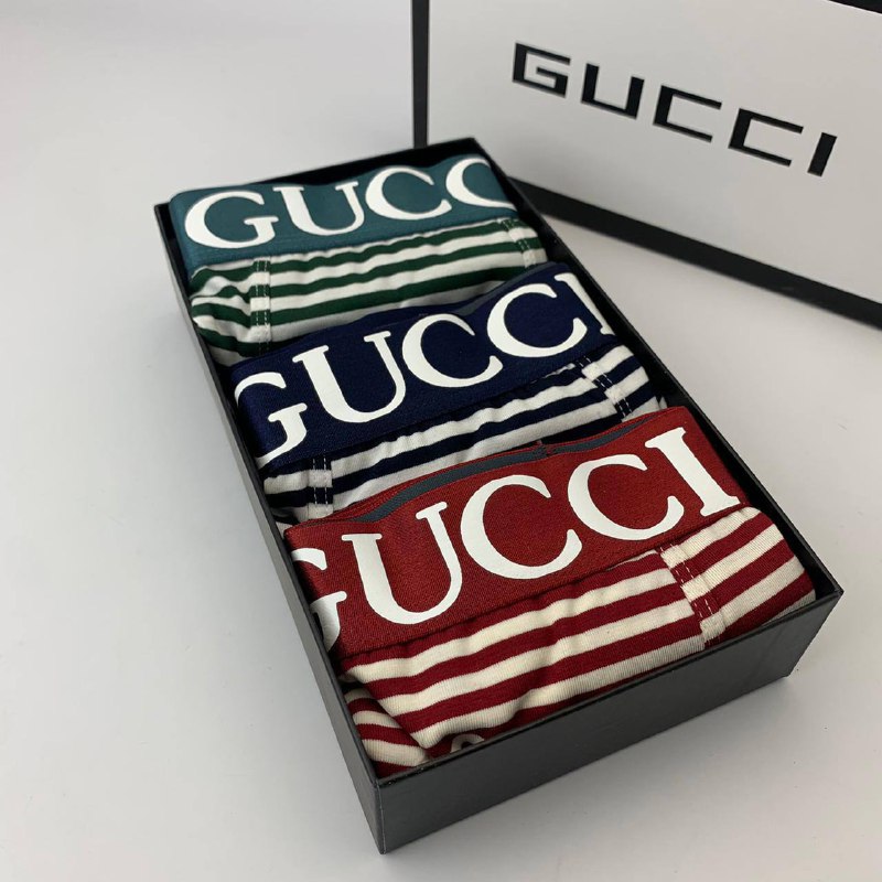 Этот комплект нижнего белья от Gucci представляет собой стильное и комфортное решение для повседневного гардероба. Каждый элемент комплекта украшен характерным логотипом бренда и выполнен в привлекательной полосатой расцветке, подчеркивающей элегантность изделий. Такой комплект идеально подходит для мужчин, ценящих качество и модный дизайн.